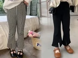 修身開叉喇叭褲(格子)