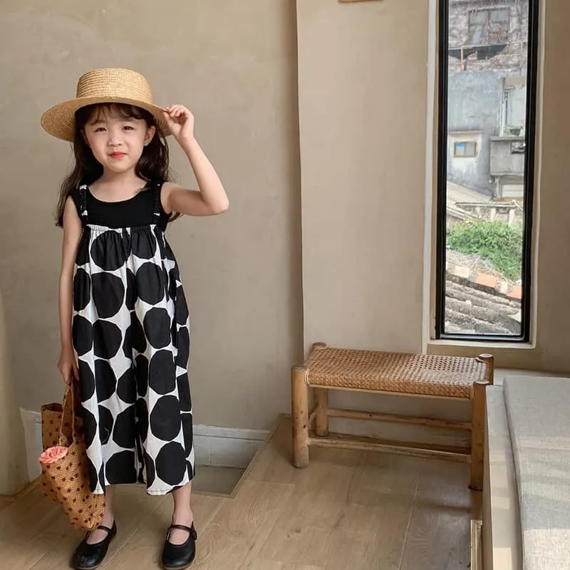大圓點闊腿吊帶褲