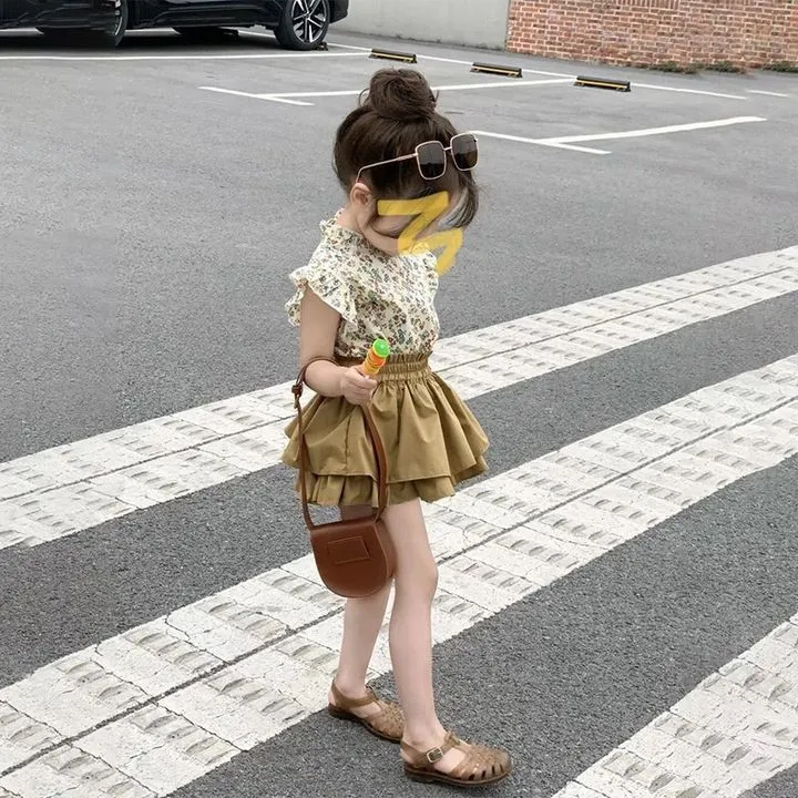 立領無袖花邊襯衫+蛋糕褲裙