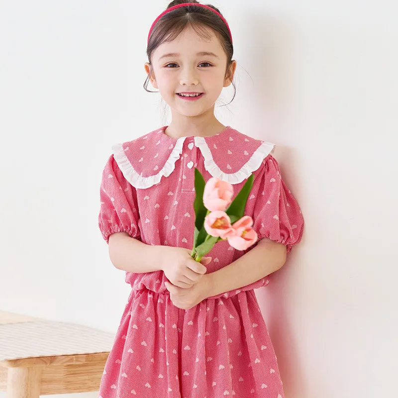 愛心滿印蕾絲荷葉領套裝