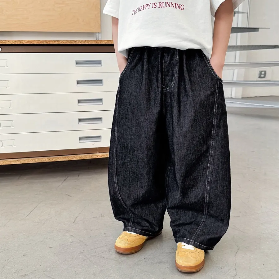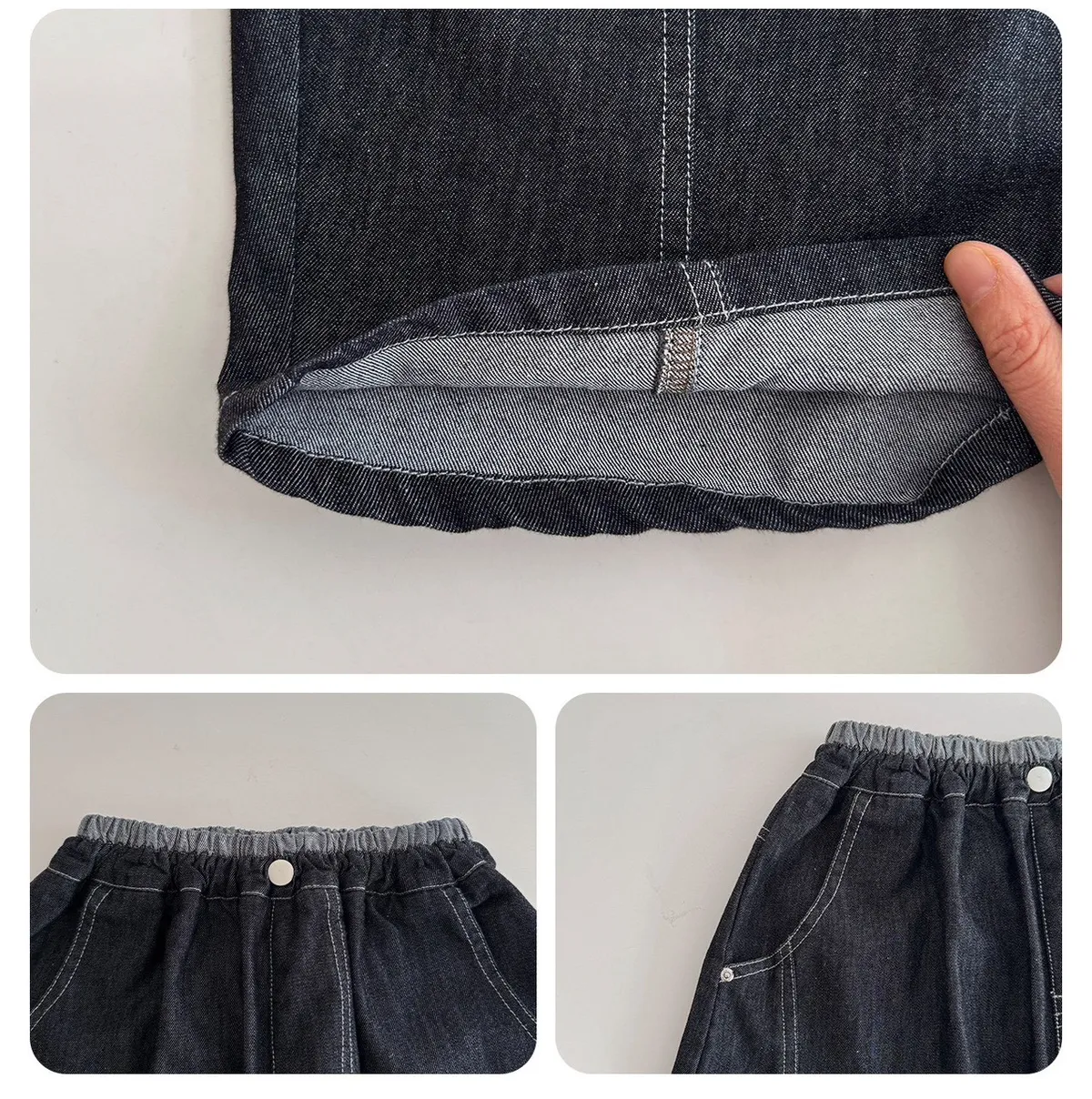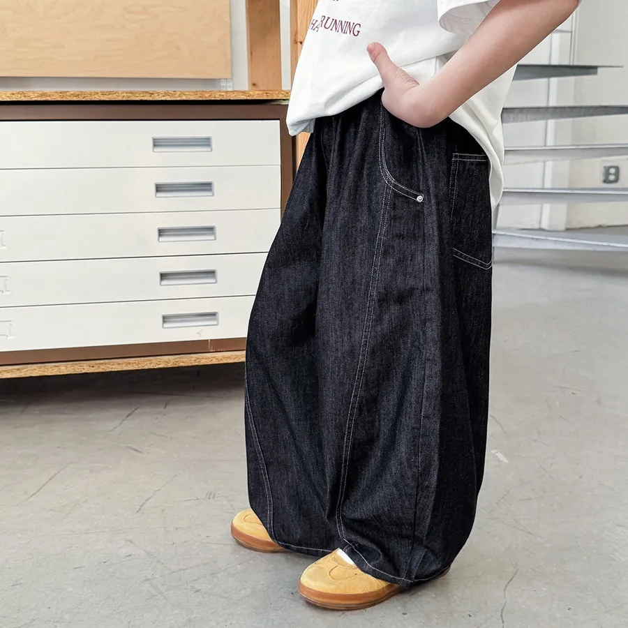 深色拼接天絲輕薄休閒牛仔褲