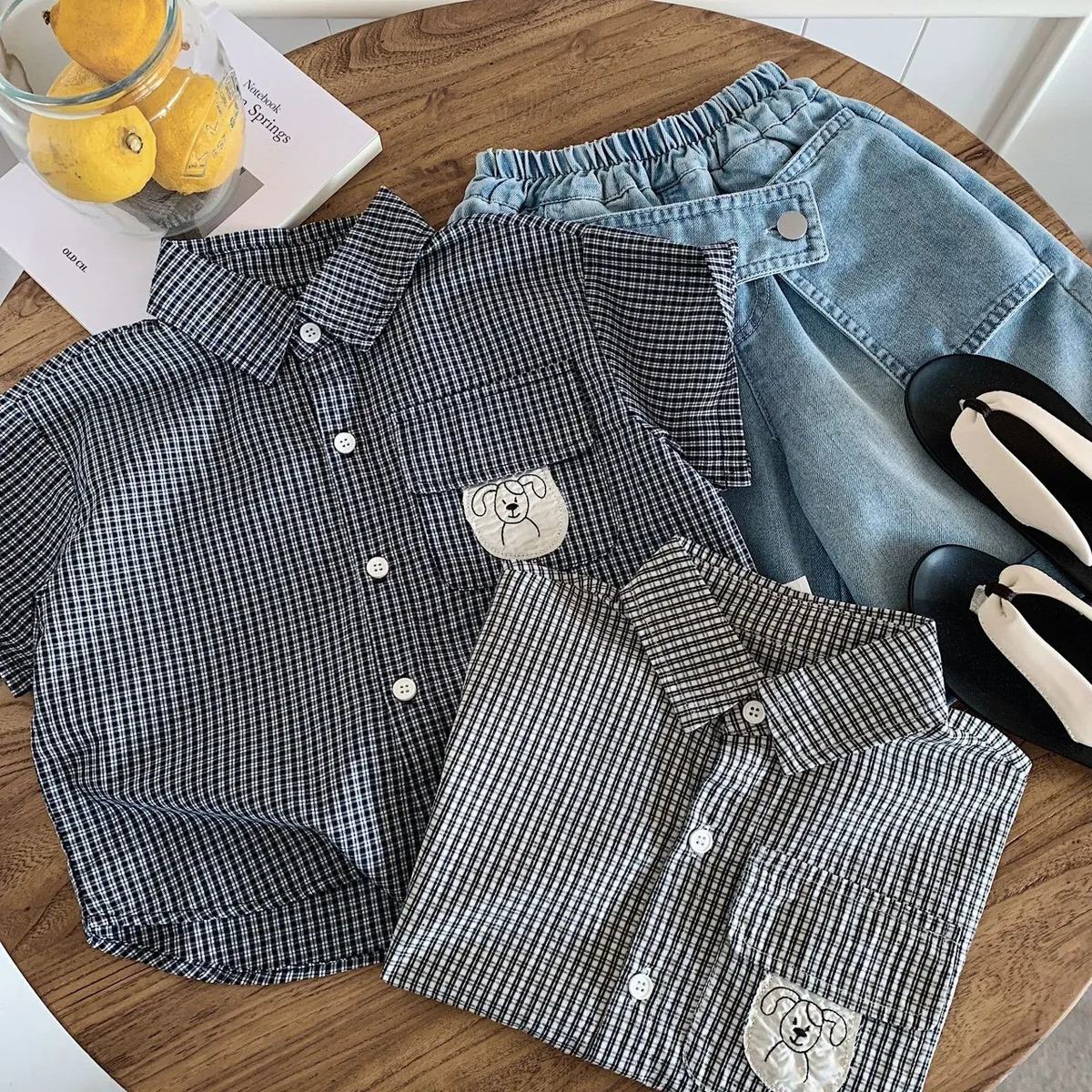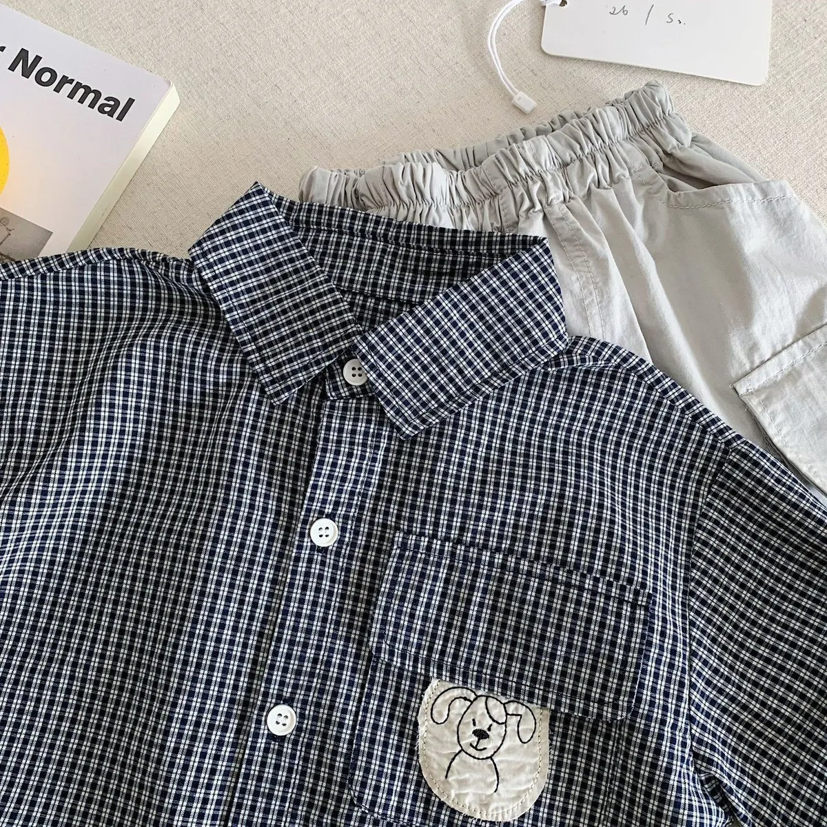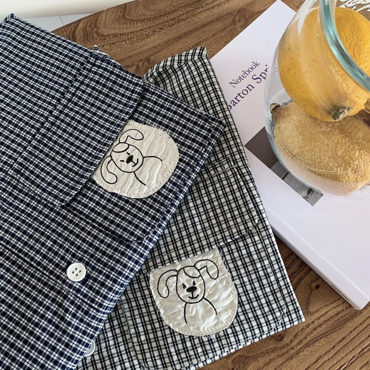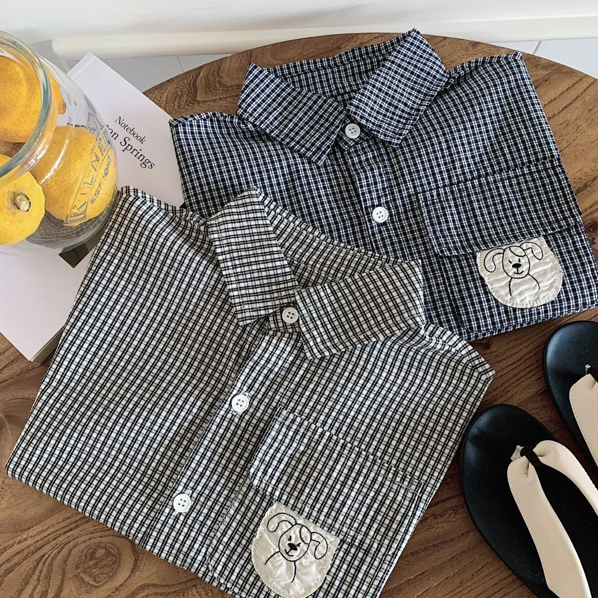 🐶【刺繡小狗格紋休閒襯衫】童趣×時尚兼具!