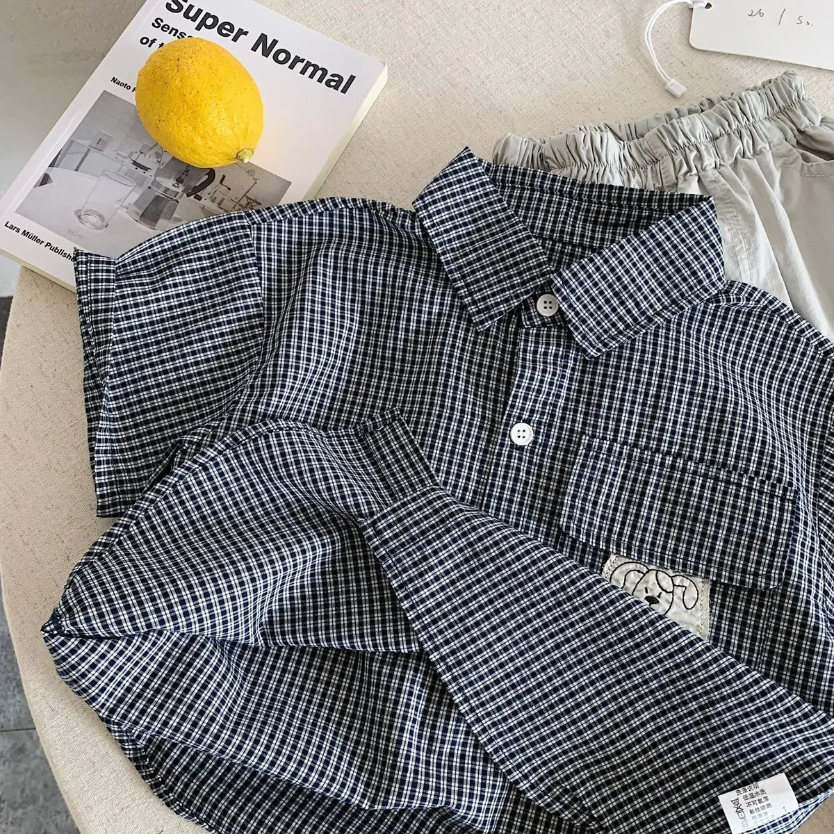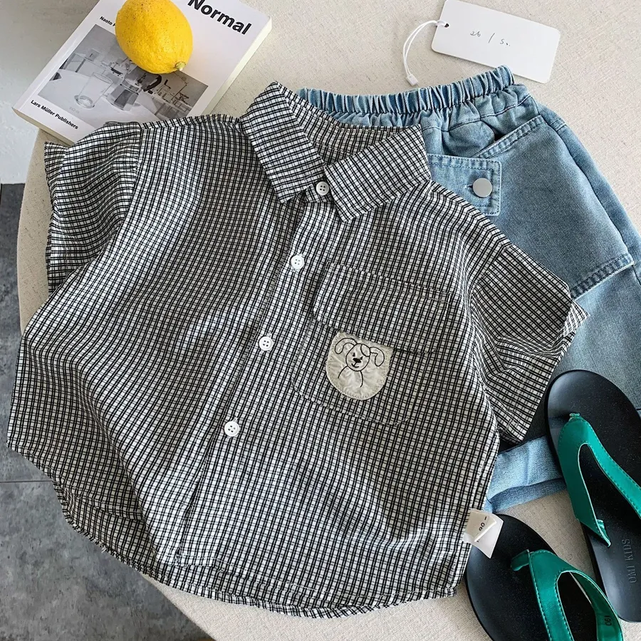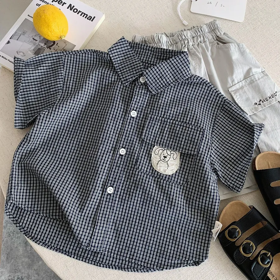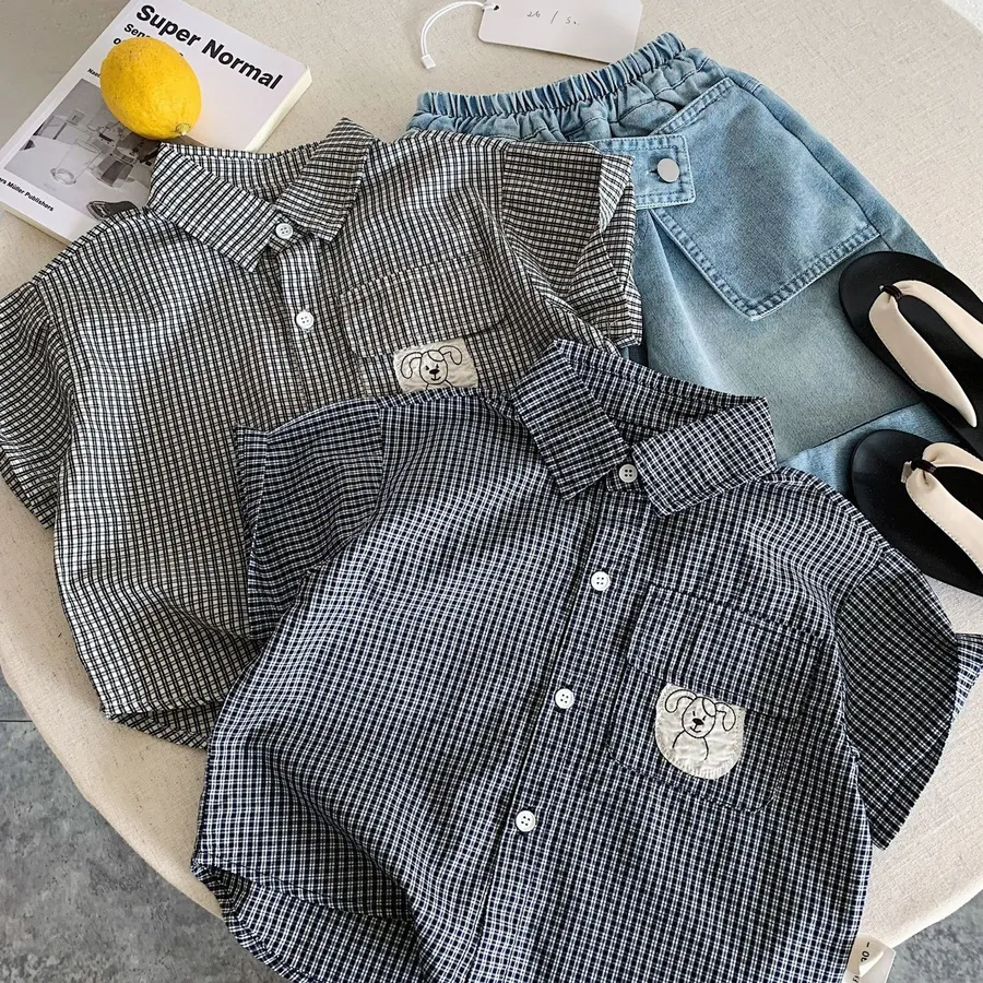 🐶【刺繡小狗格紋休閒襯衫】童趣×時尚兼具!