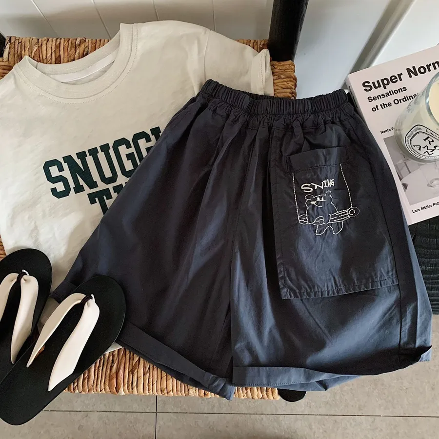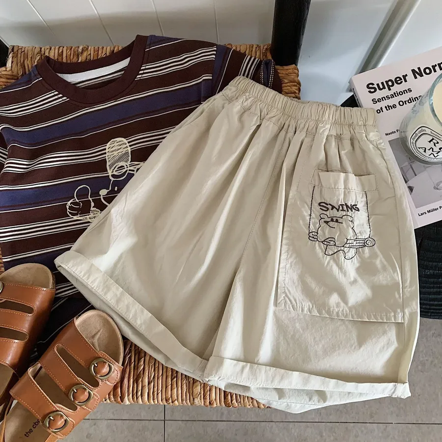 🩳【韓版口袋小熊休閒短褲】可愛潮流雙重加分!