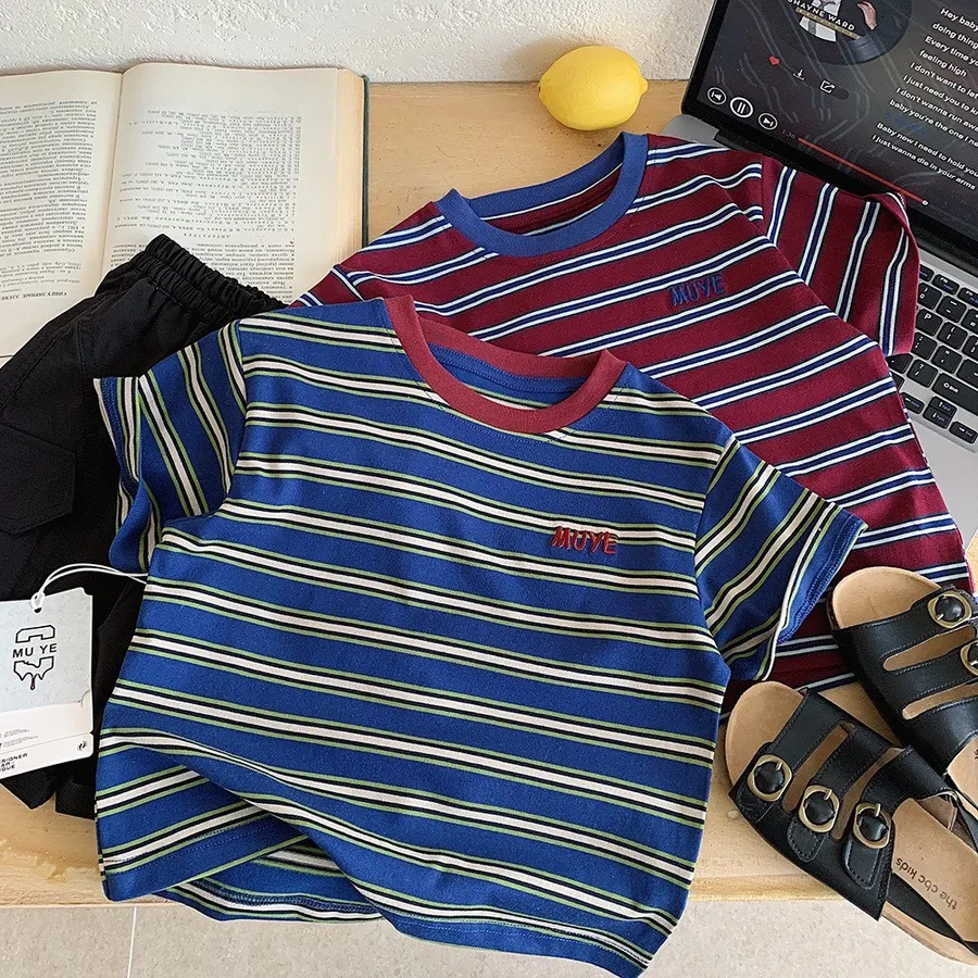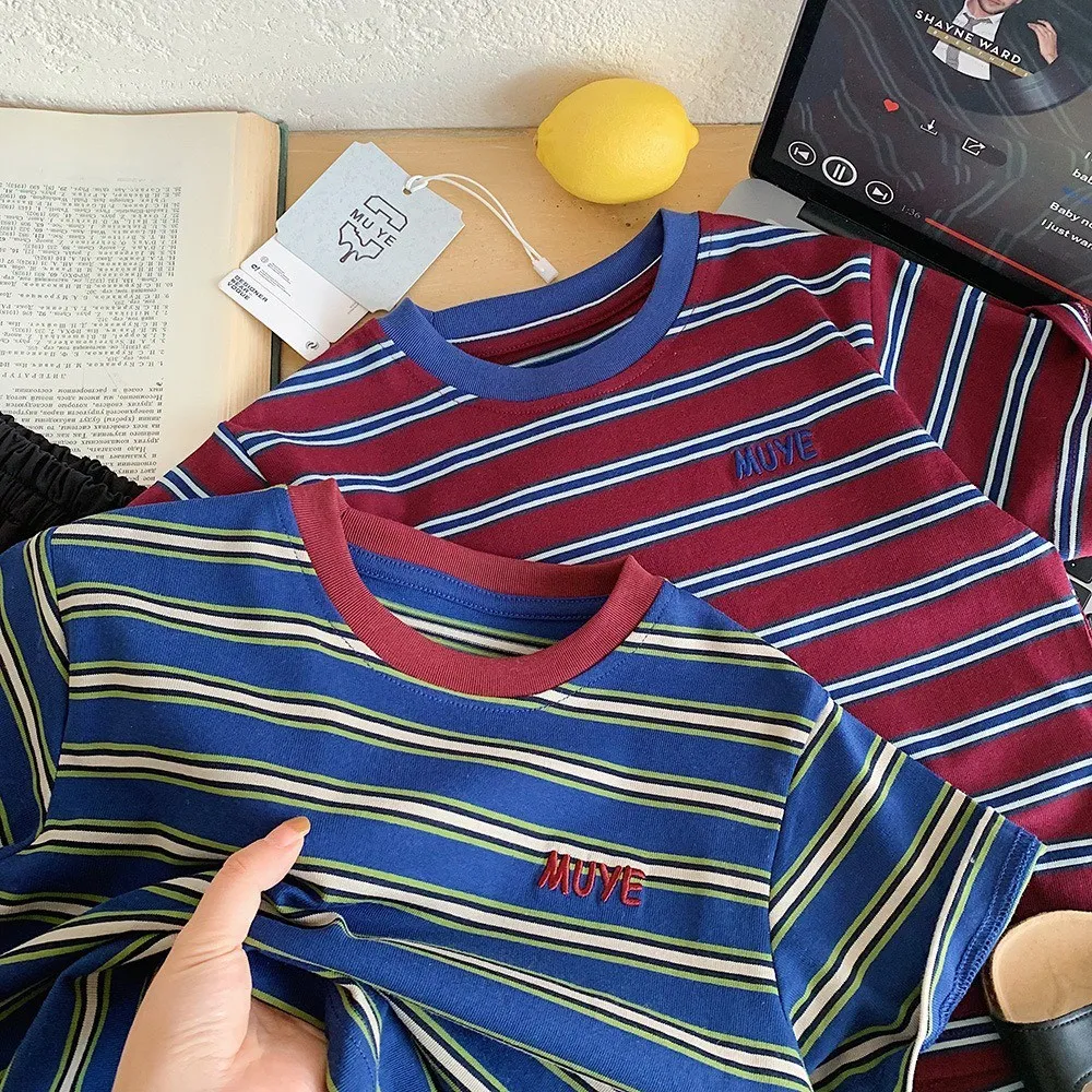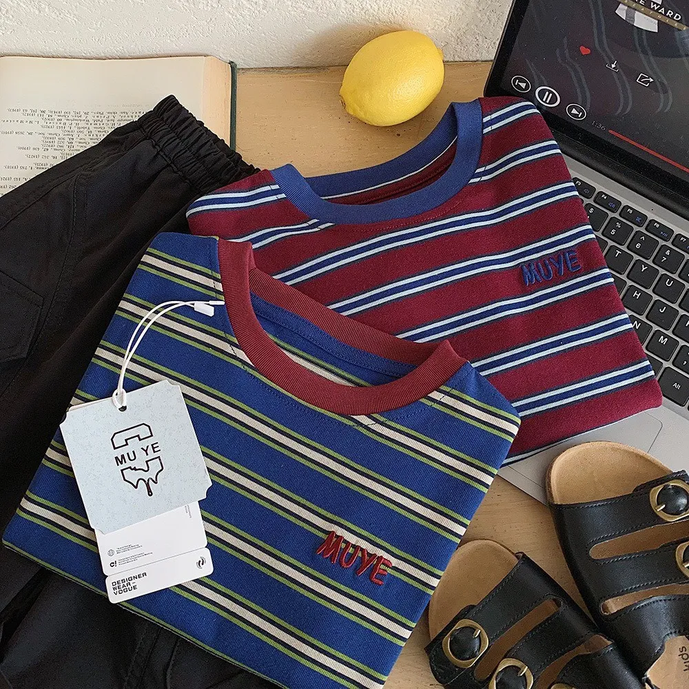 美式休閒條紋T恤
