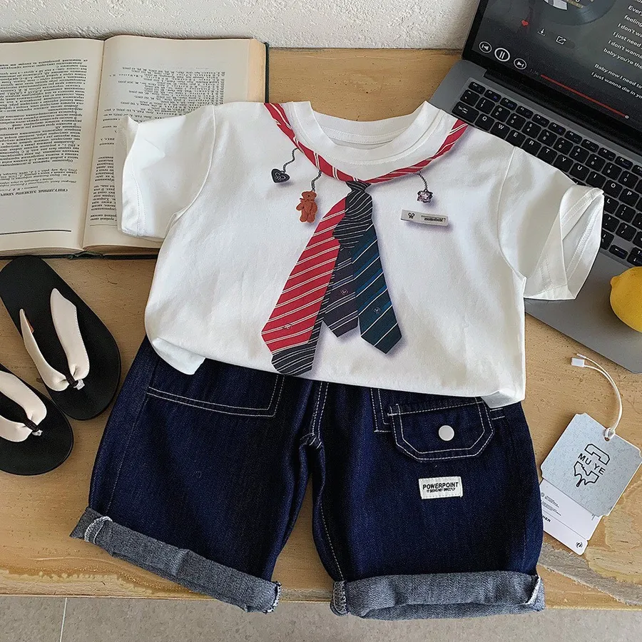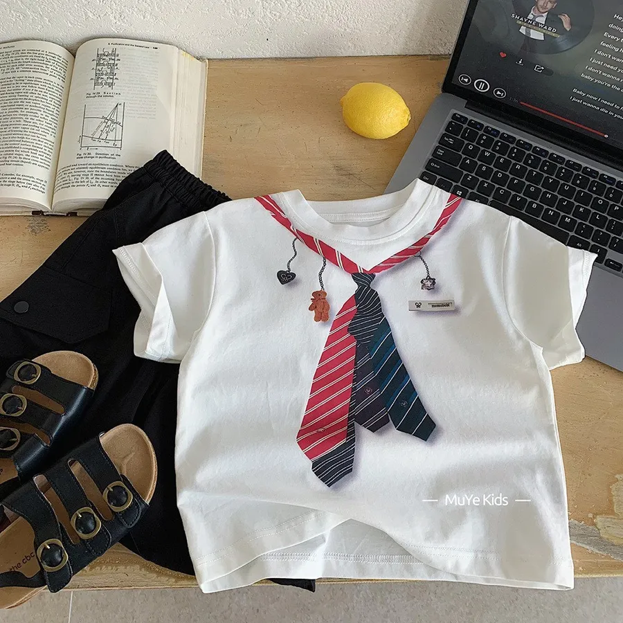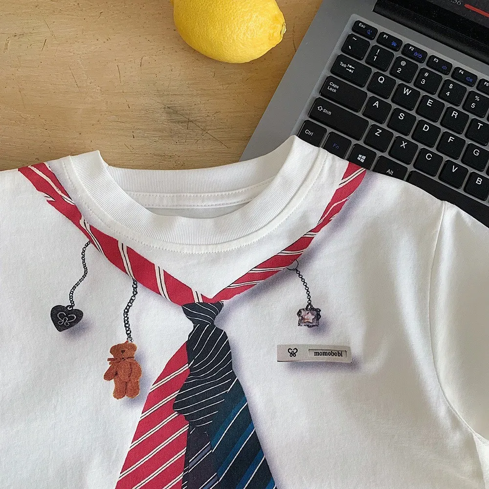胸前領帶印花設計,小朋友穿起來既可愛又有小紳士感。