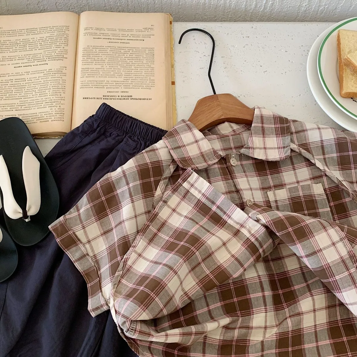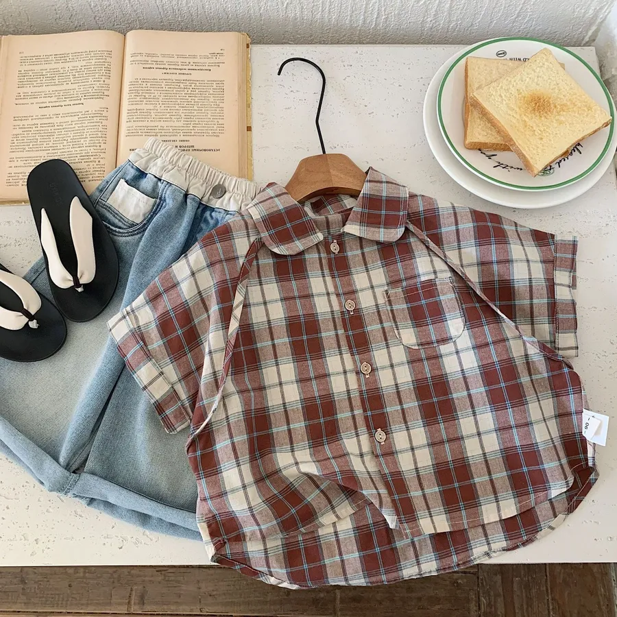 經典美式格紋散發小潮童氣息