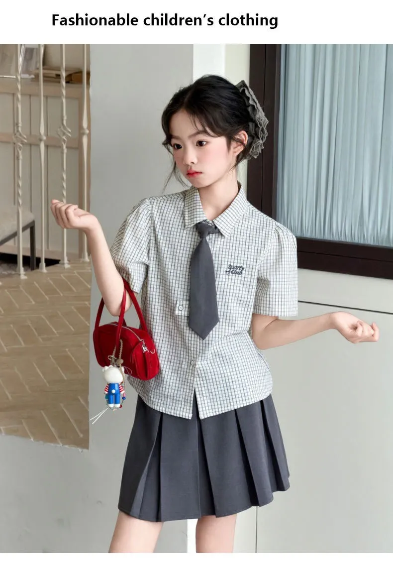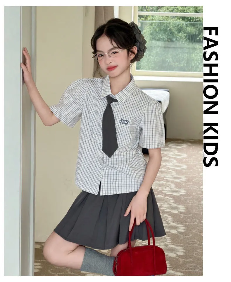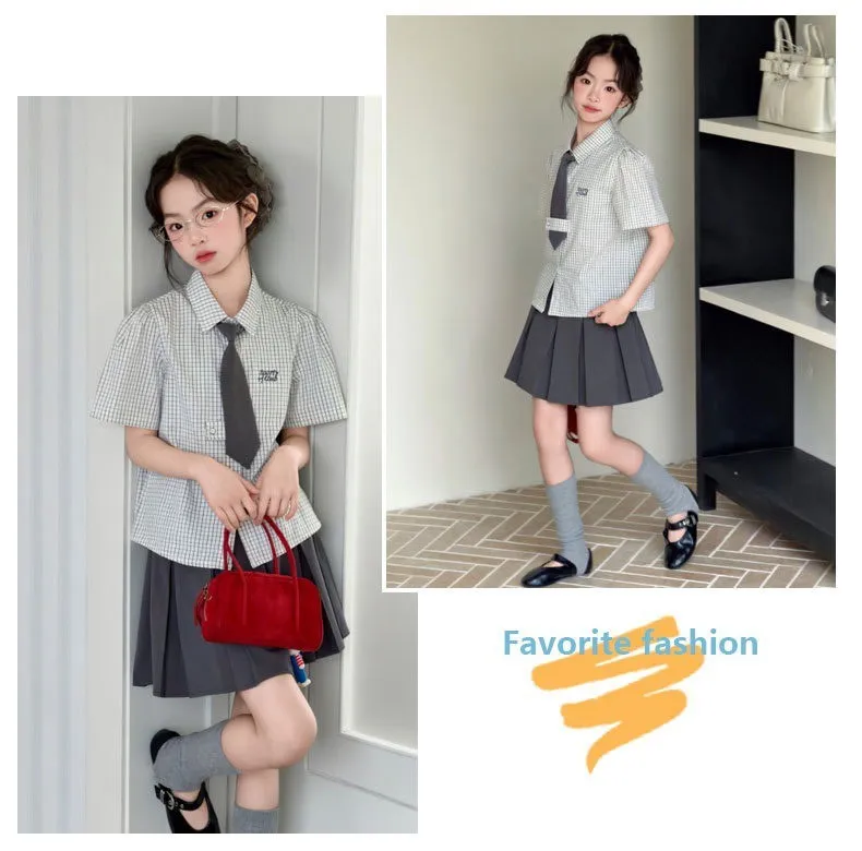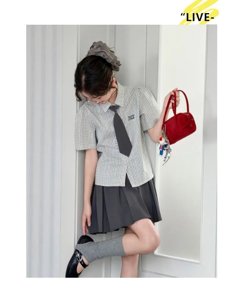 韓系學院風格子襯衫+半裙