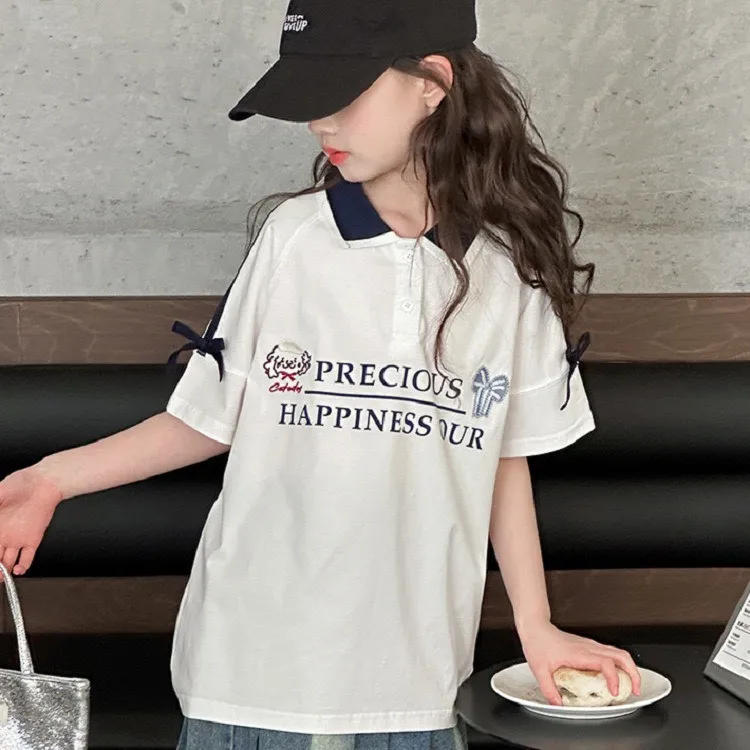 選用布料材質: 55%棉穿上它,就像擁有一個小小的亮點,簡單又不失俏皮感!這件 百搭POLO蝴蝶結設計T恤,專為中大童打造,既有經典POLO風格,又加入甜美蝴蝶結細節,讓孩子在日常穿搭中也能展現小小個性與優雅。