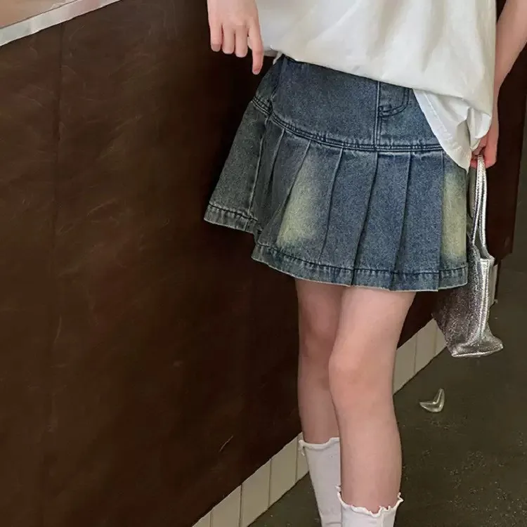 百搭牛仔百褶短裙