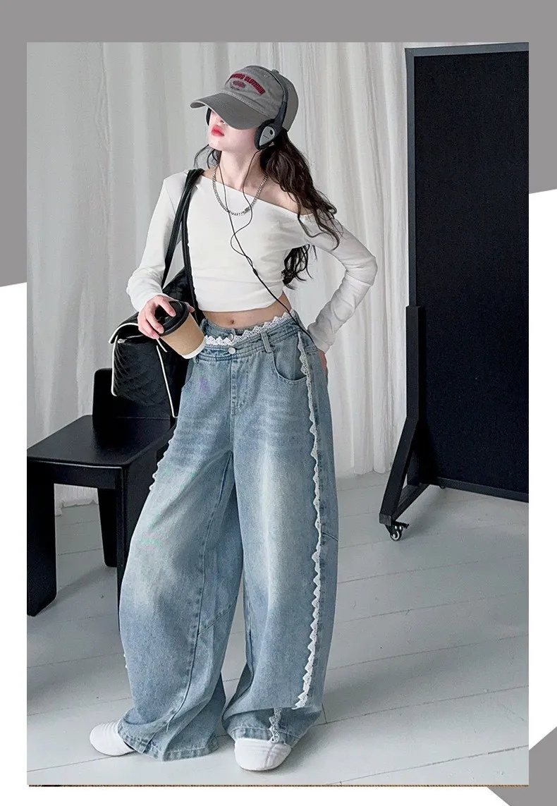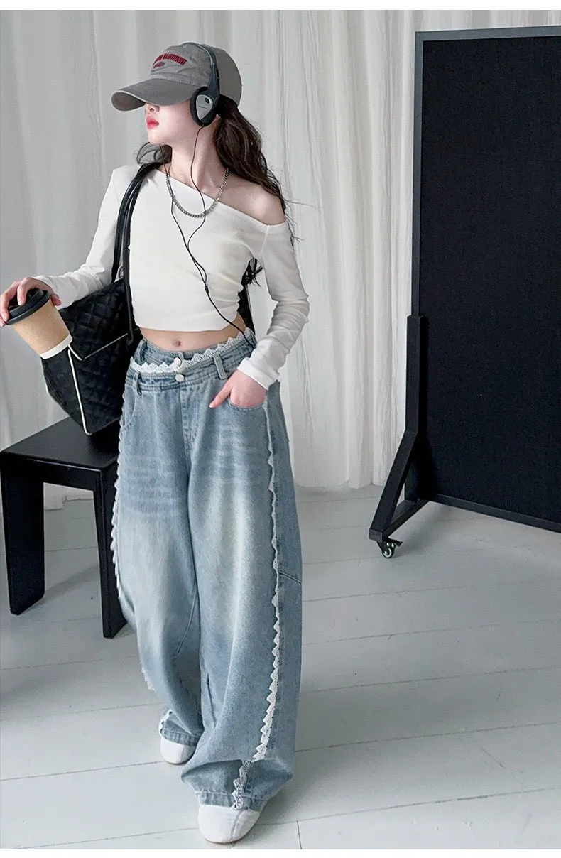 韓系花邊蕾絲牛仔褲