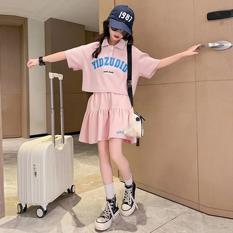 時髦休閒字母運動褲裙套裝