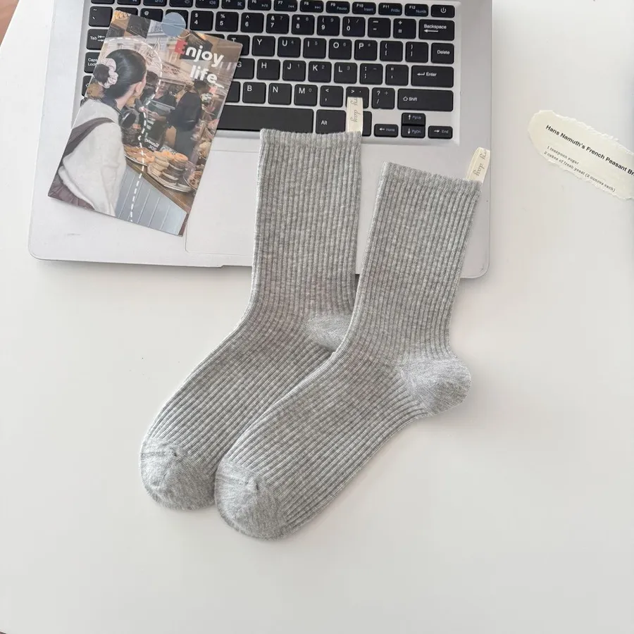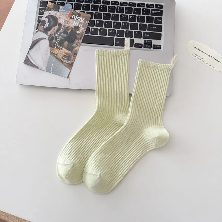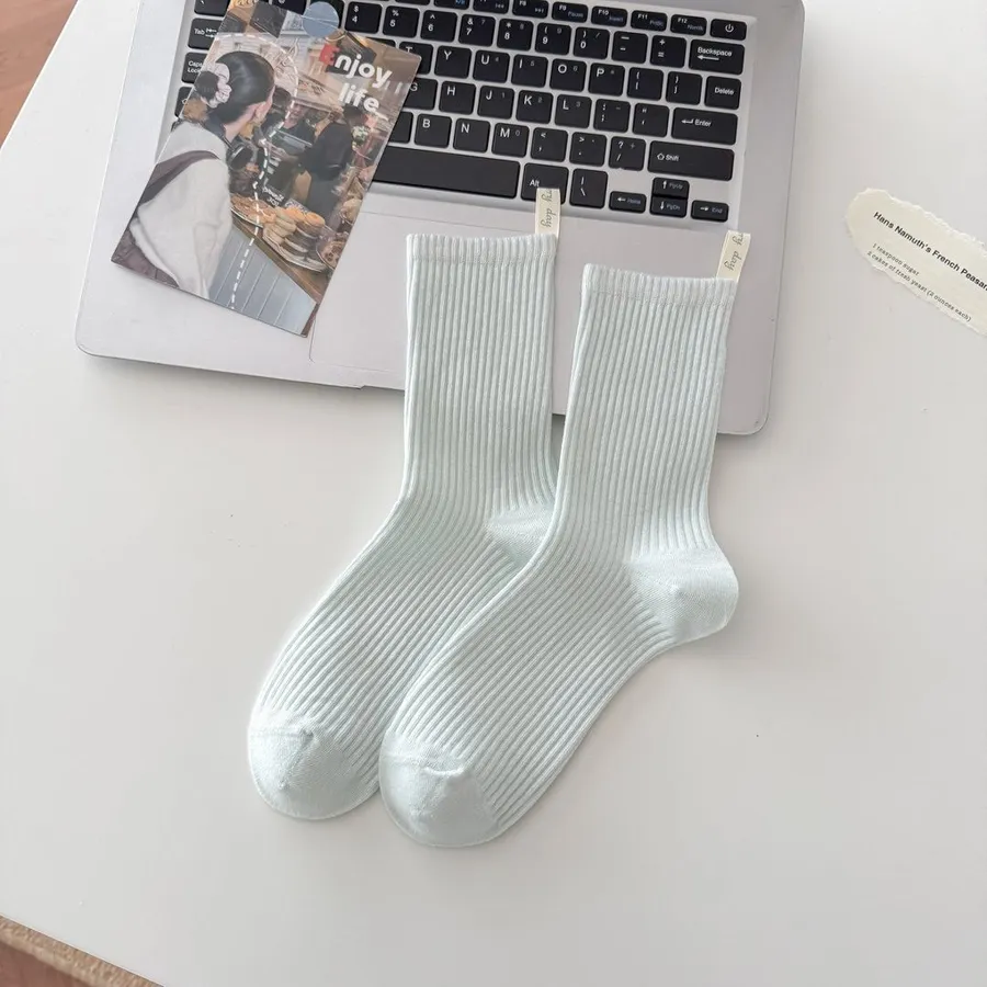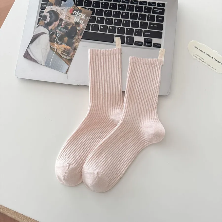直條素色後根布標中筒推推襪