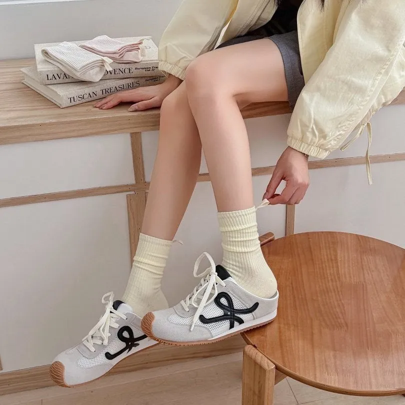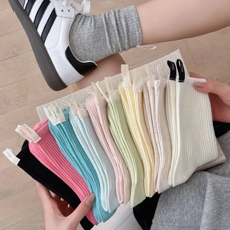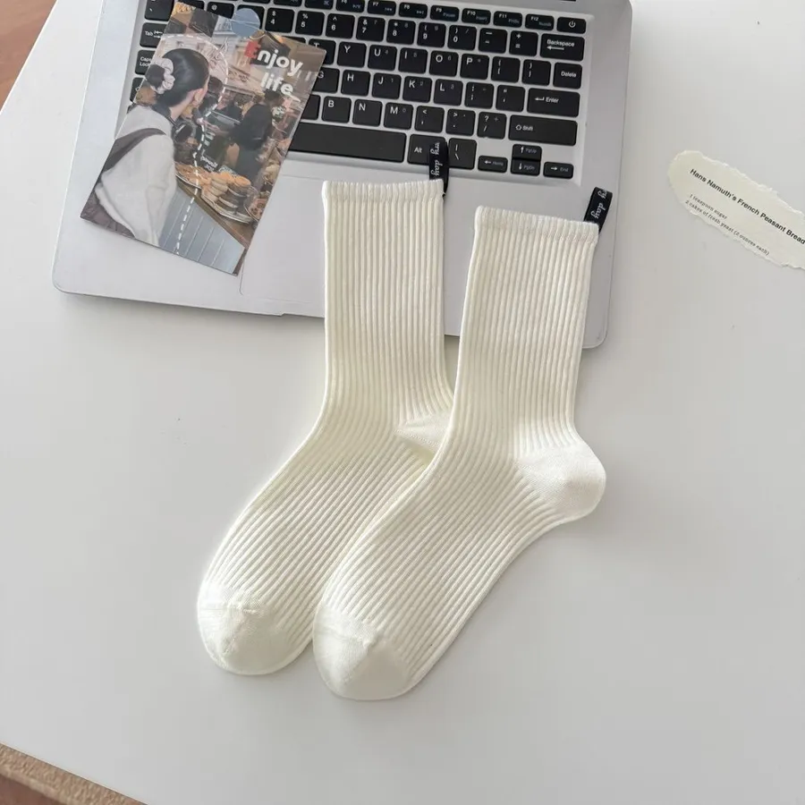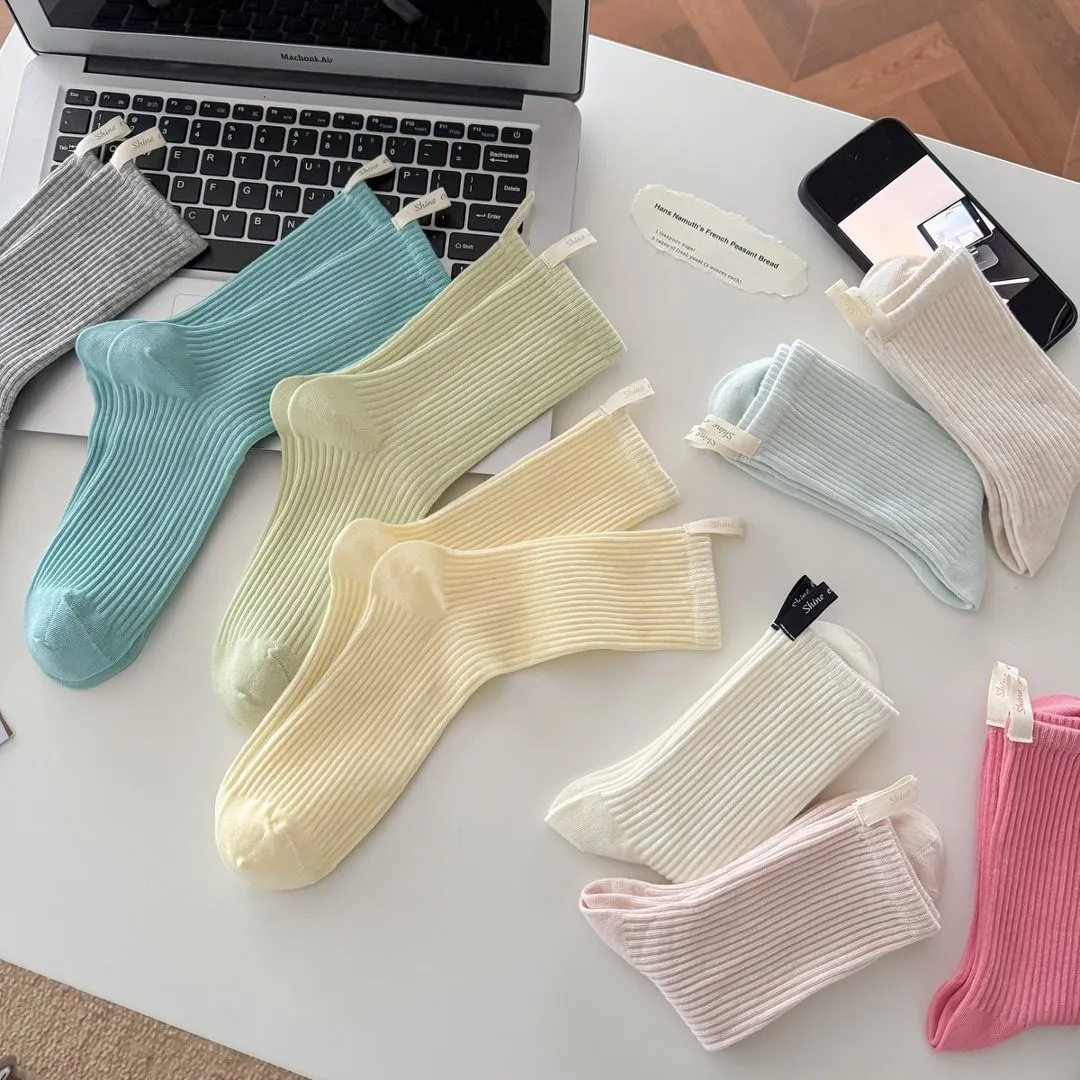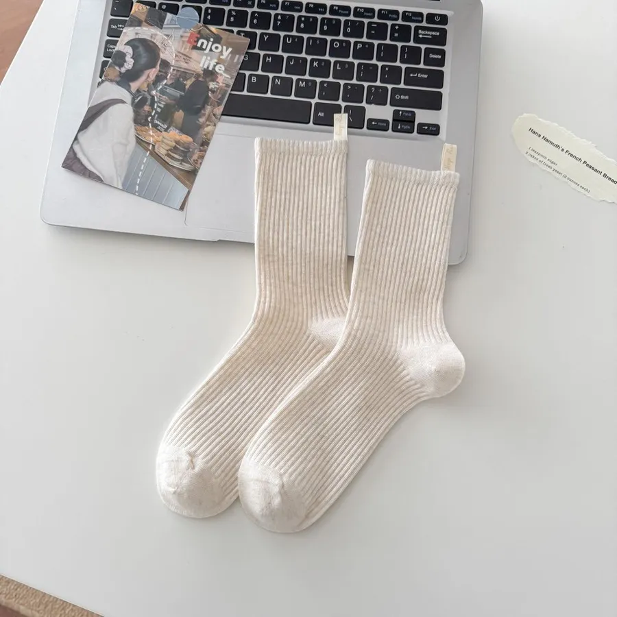 直條素色後根布標中筒推推襪
