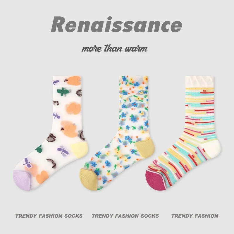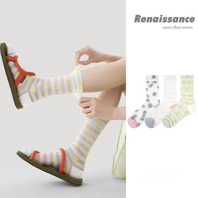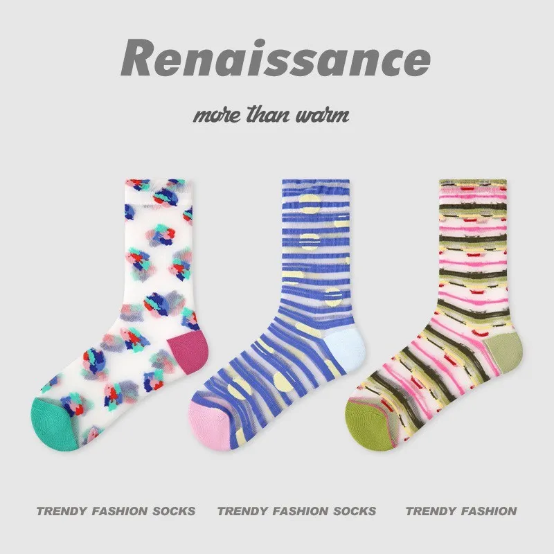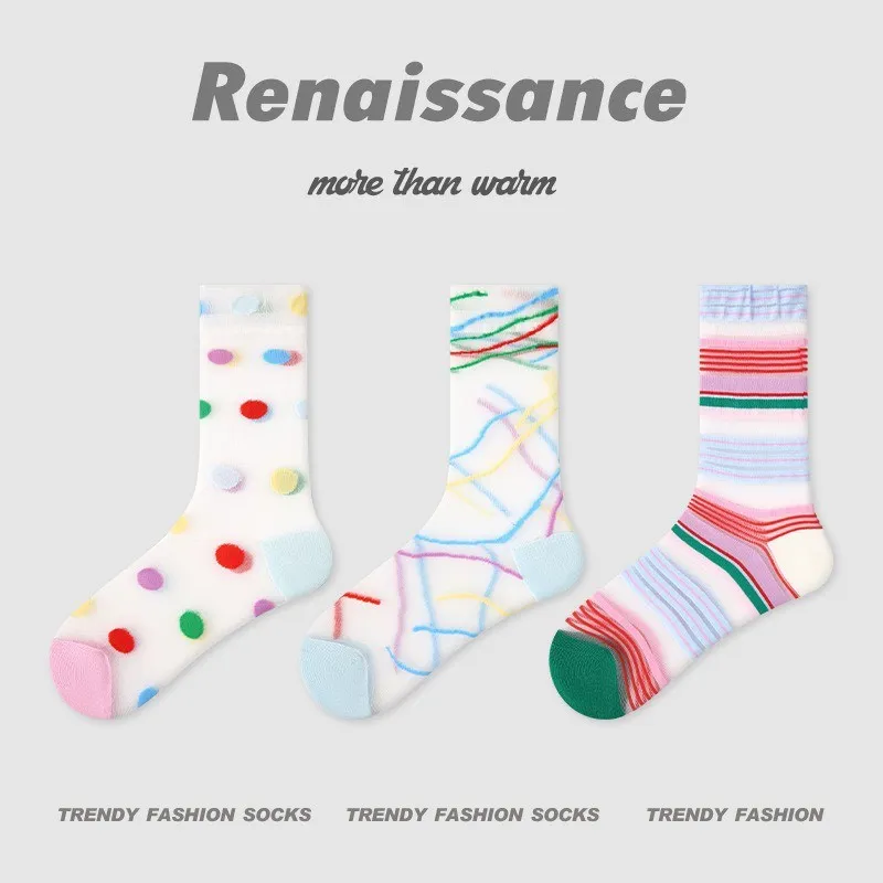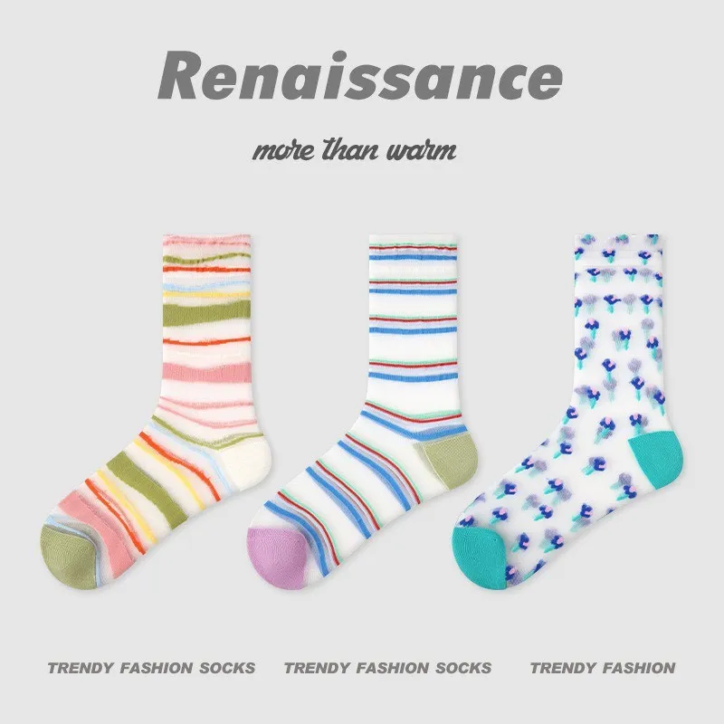 這款「透氣彩色條紋中筒襪」不只是舒適,更能為日常造型加一點活潑感