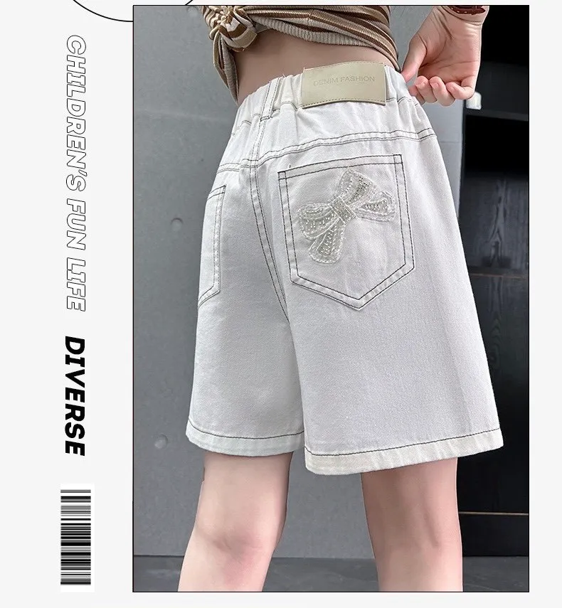 白色牛仔五分褲