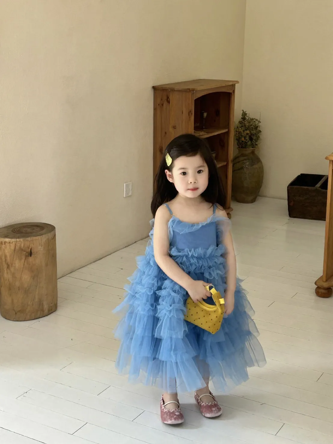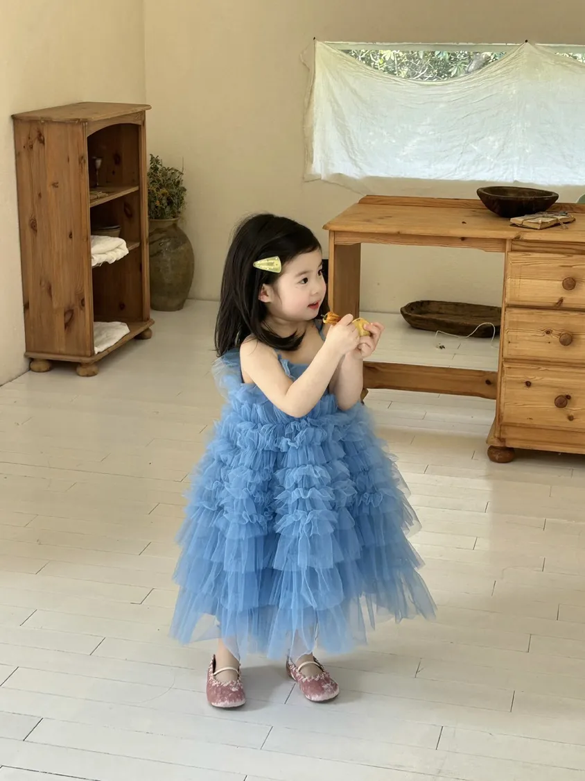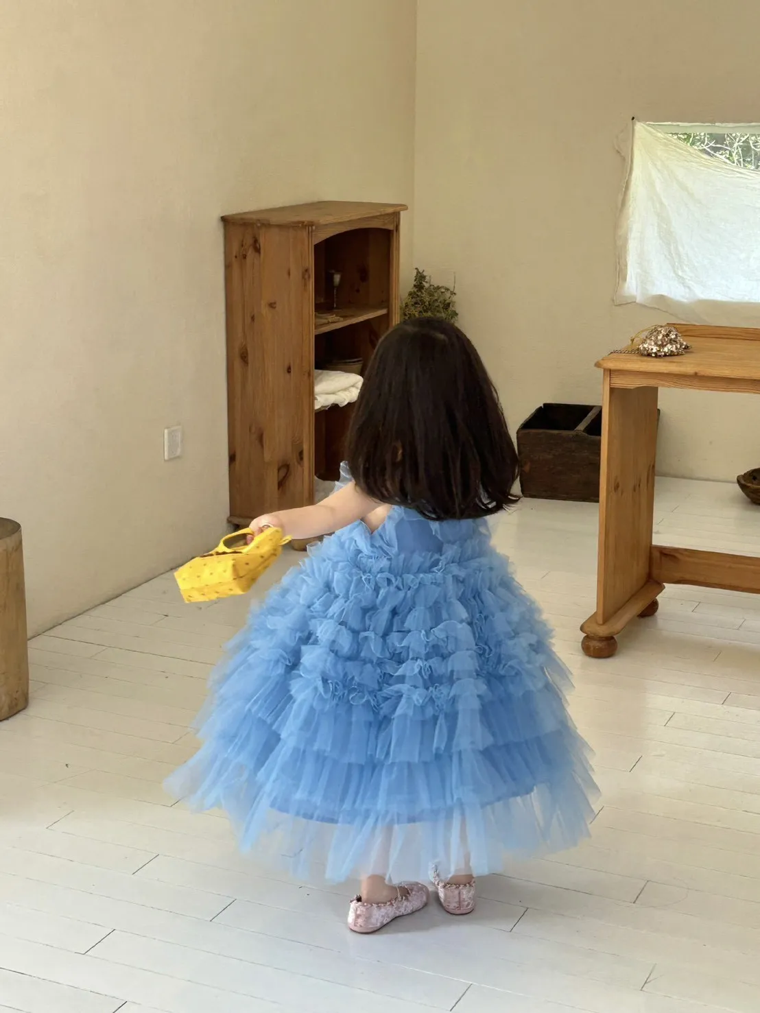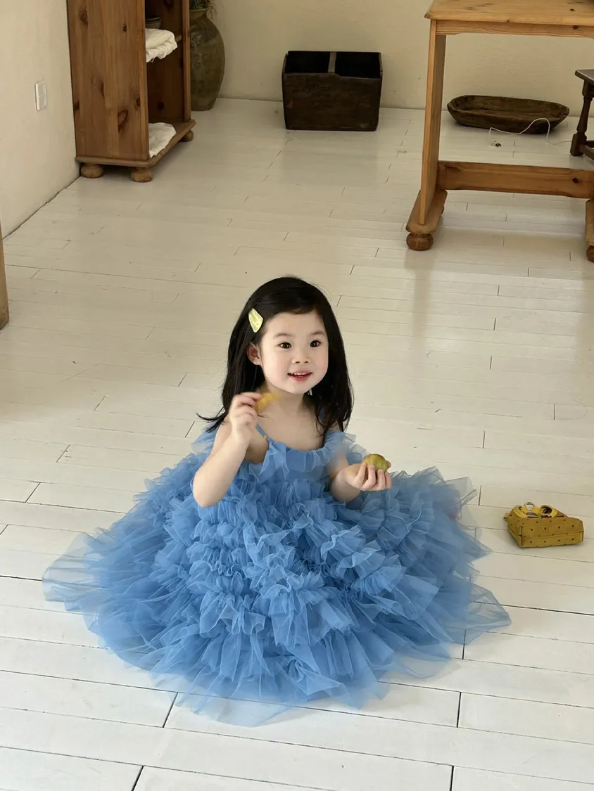 選用布料材質: 80%棉+聚酯纖維一眼就愛上的夢幻藍💙層層網紗堆疊出輕盈蓬鬆的裙擺,走動時像小精靈般靈動飄逸✨清新的藍色調,襯托出小女孩的純真與氣質,穿上瞬間變身小公主👑不論是出遊、聚會還是拍照,都能美到發光📸