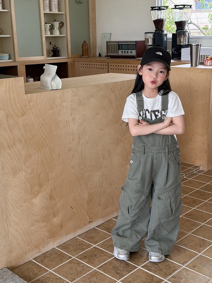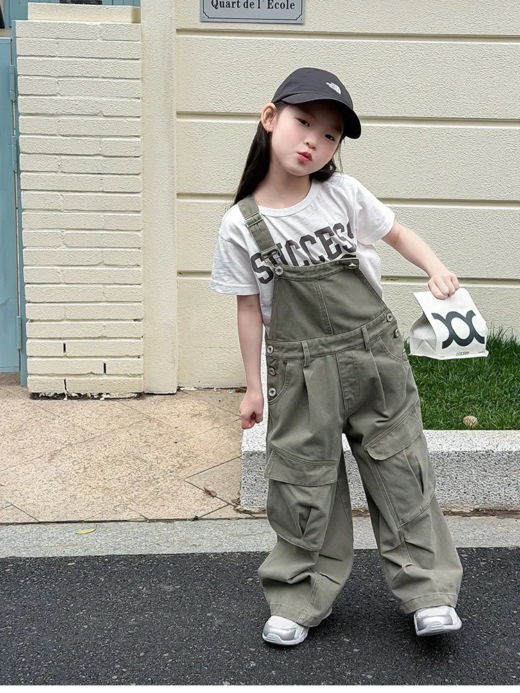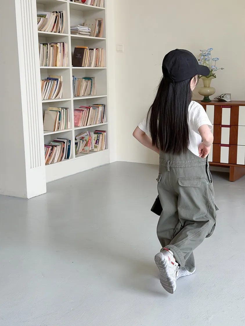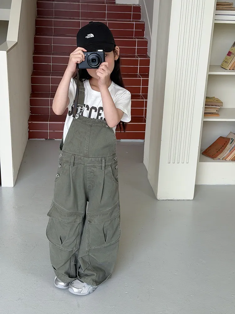 💚軍綠色口袋復古工裝風背帶褲登場!