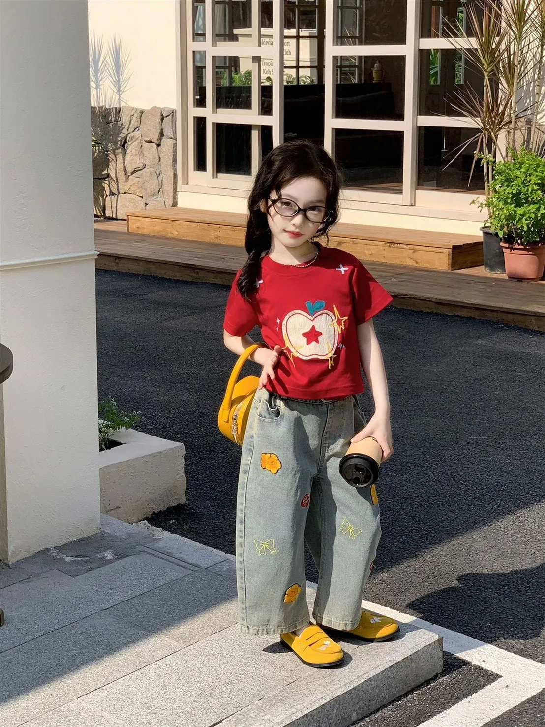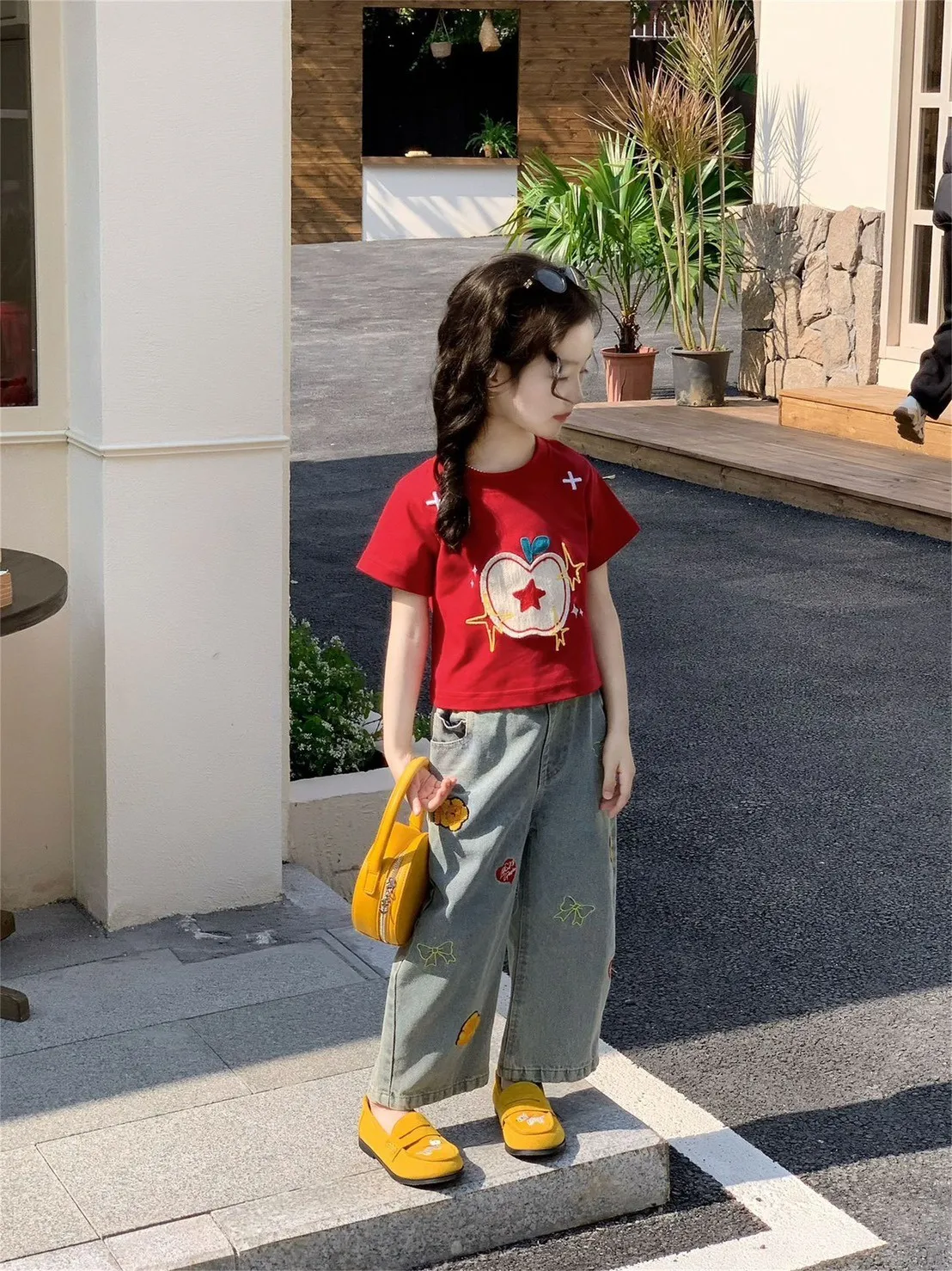 俏皮可愛又百搭的紅蘋果T恤+刺繡牛仔褲兩件套🍎💙