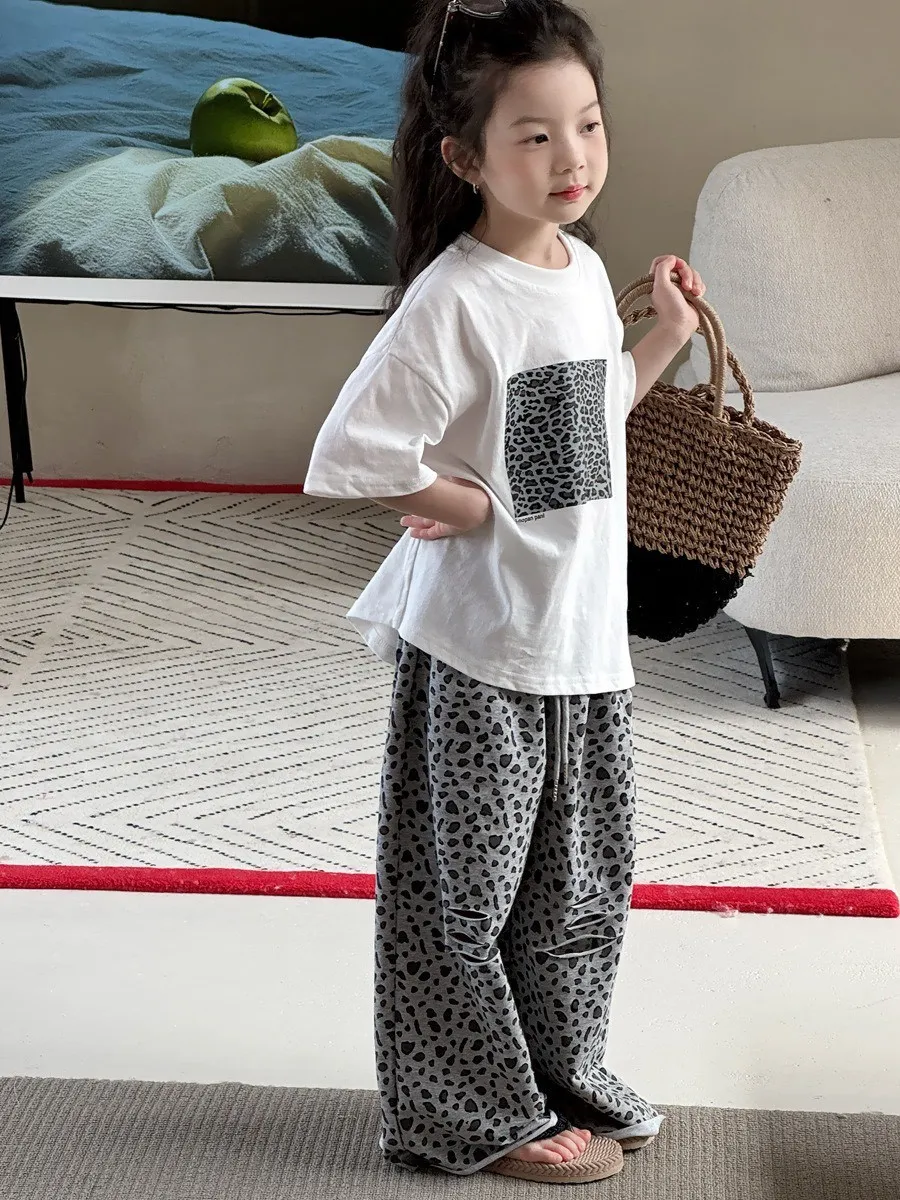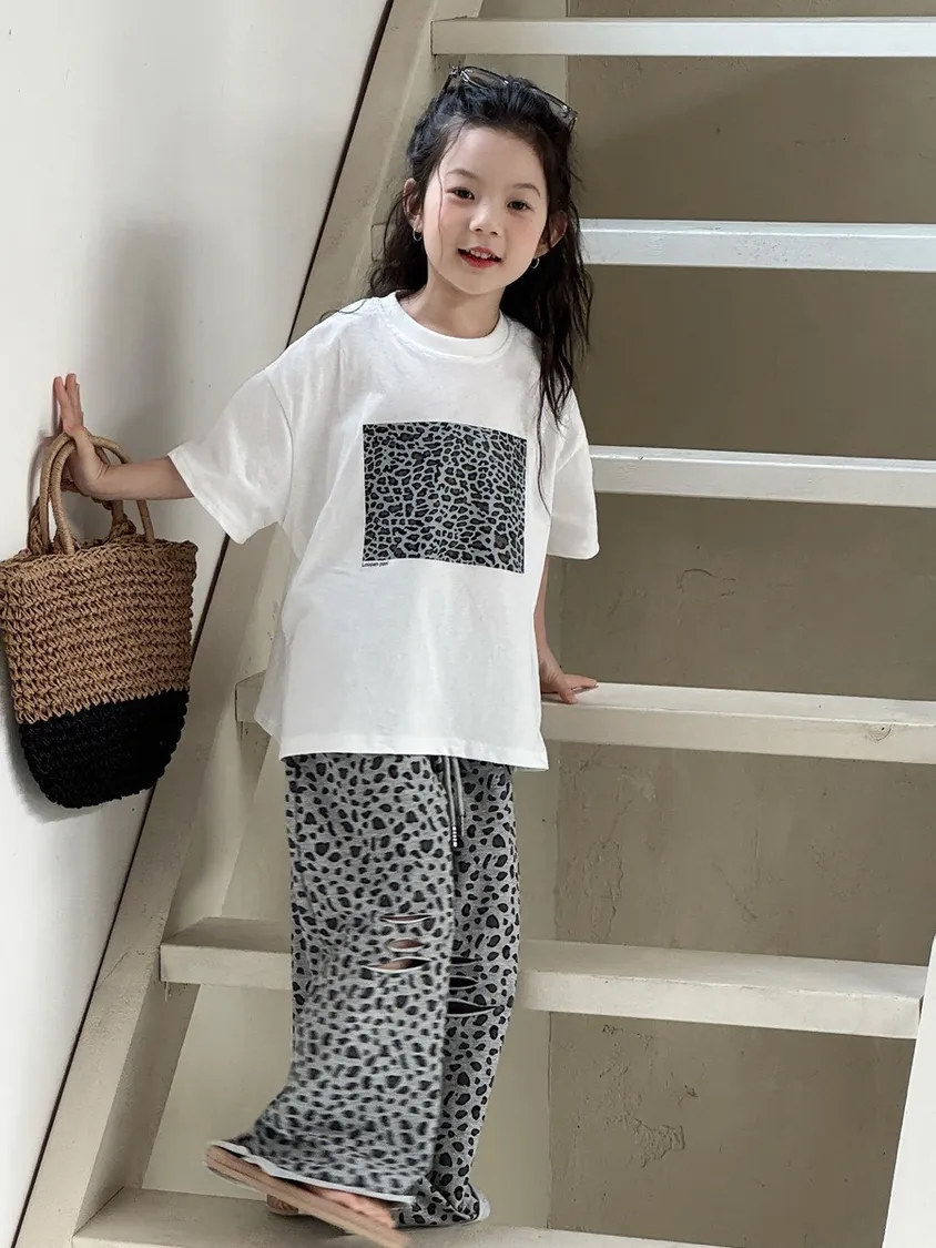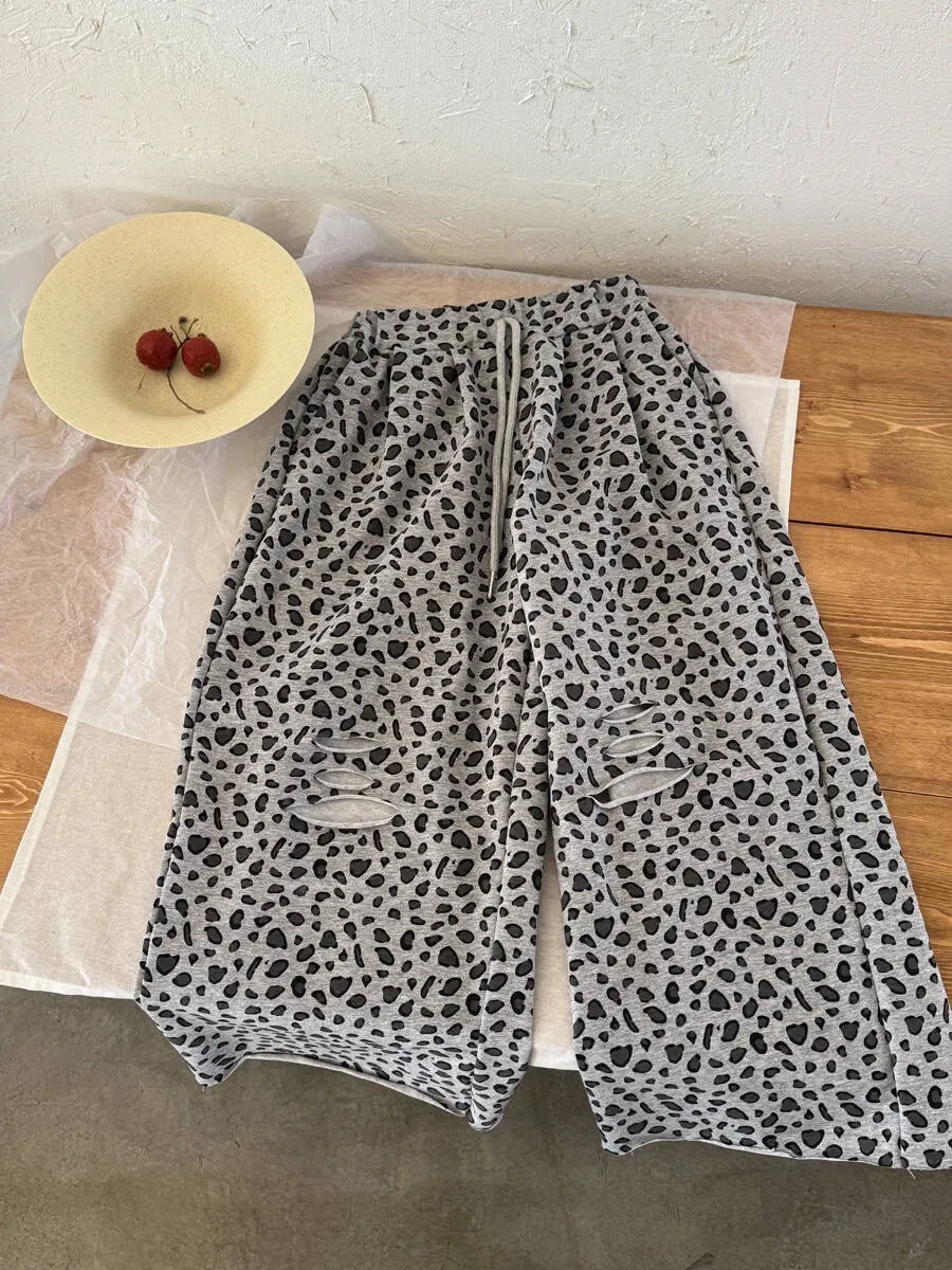🐆 豹紋破洞休閒寬褲
