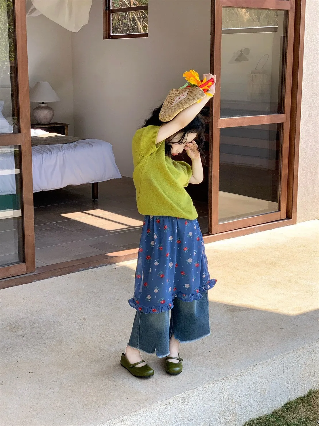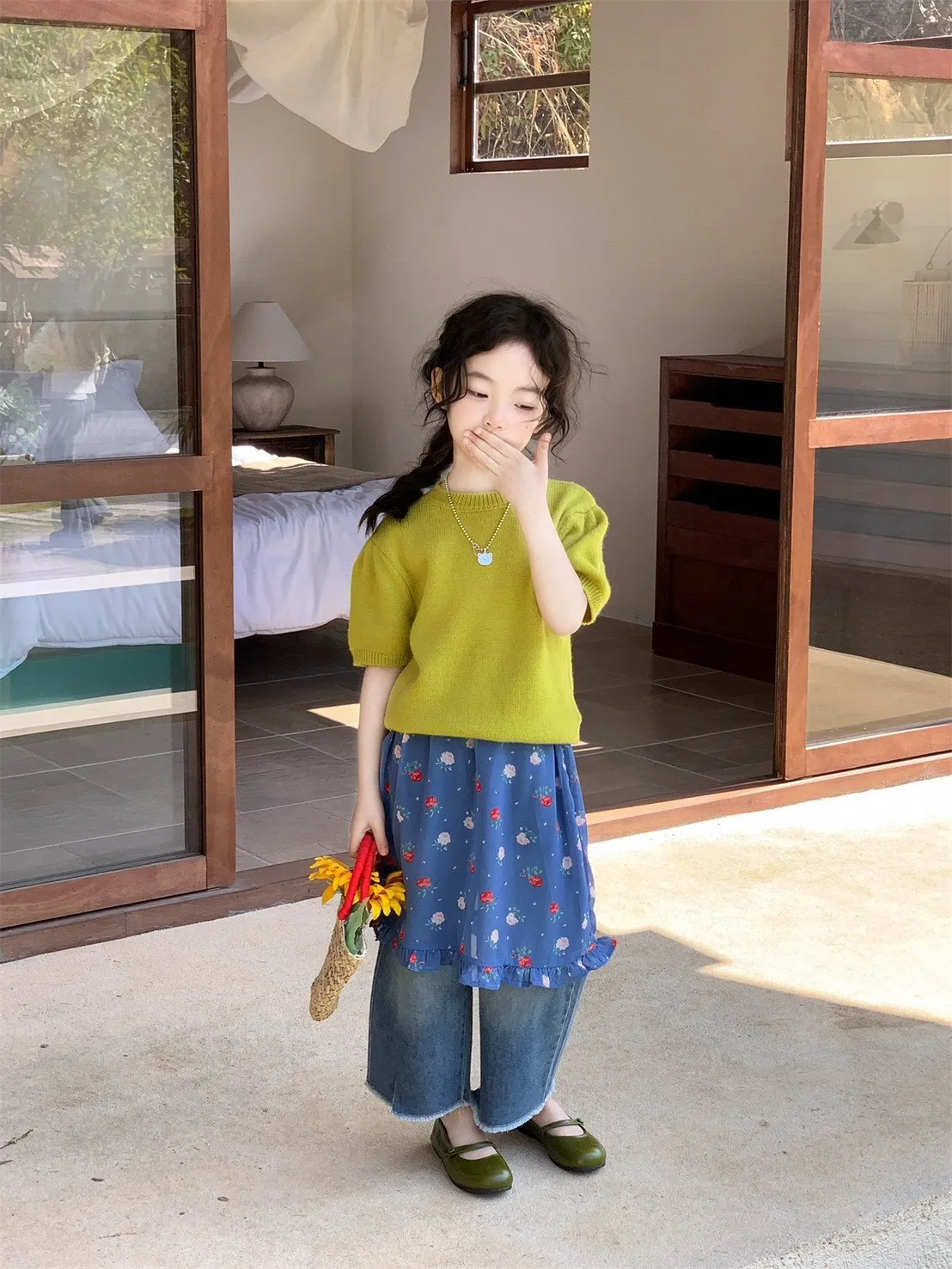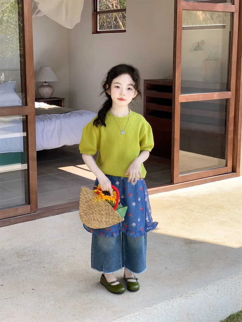 🌸 小公主夏秋必備 | 時髦三件套 🌸✨ 上衣 – 短袖針織衫精緻短袖設計,簡約又時髦,輕鬆搭配各種下身;清新百搭色系,打造小女孩甜美氣質。✨ 中層 – 碎花屁簾俏皮碎花圖案,活潑又可愛,增加造型層次感;屁簾設計,走路小擺動都萌翻天;✨ 下身 – 時髦牛仔九分褲修身九分版型,百搭又好穿,顯腿長更俏皮;與碎花屁簾疊搭,輕鬆穿出層次感與時尚感。