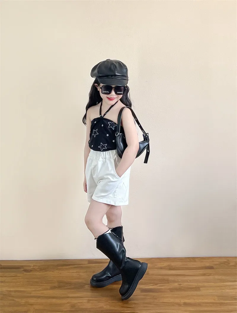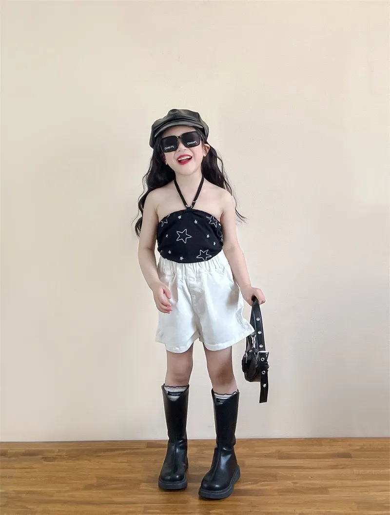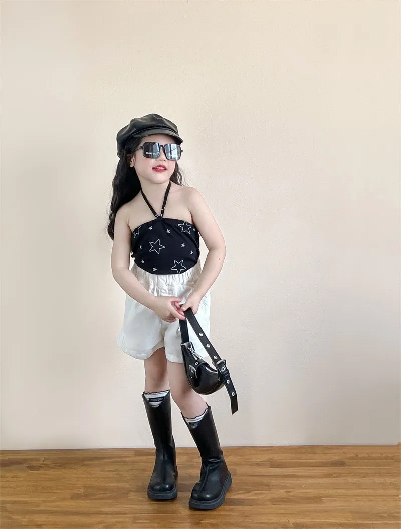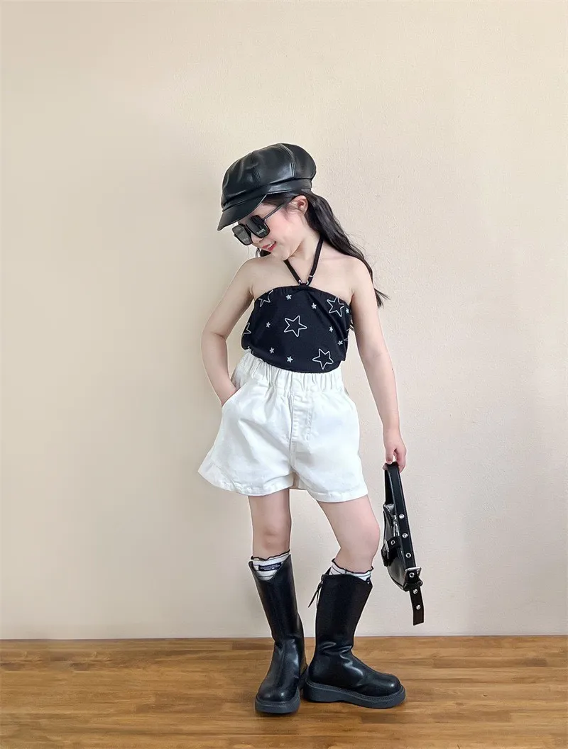 ⭐ 閃亮小星星 | 夏日清爽兩件套 ⭐✨ 上衣 – 滿印五角星吊帶上衣滿版五角星圖案,俏皮吸睛,寶貝一穿就成為小焦點;吊帶設計清爽透氣,夏日穿著輕盈又自在;活潑繽紛元素,讓整體造型更有童趣與活力。✨ 下身 – 百搭白色短褲清新白色設計,簡約百搭,輕鬆搭配各種上衣;夏日必備單品,清爽又耐看。