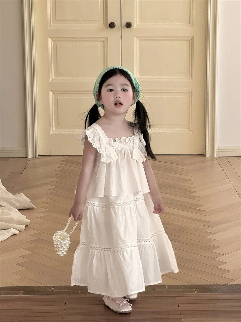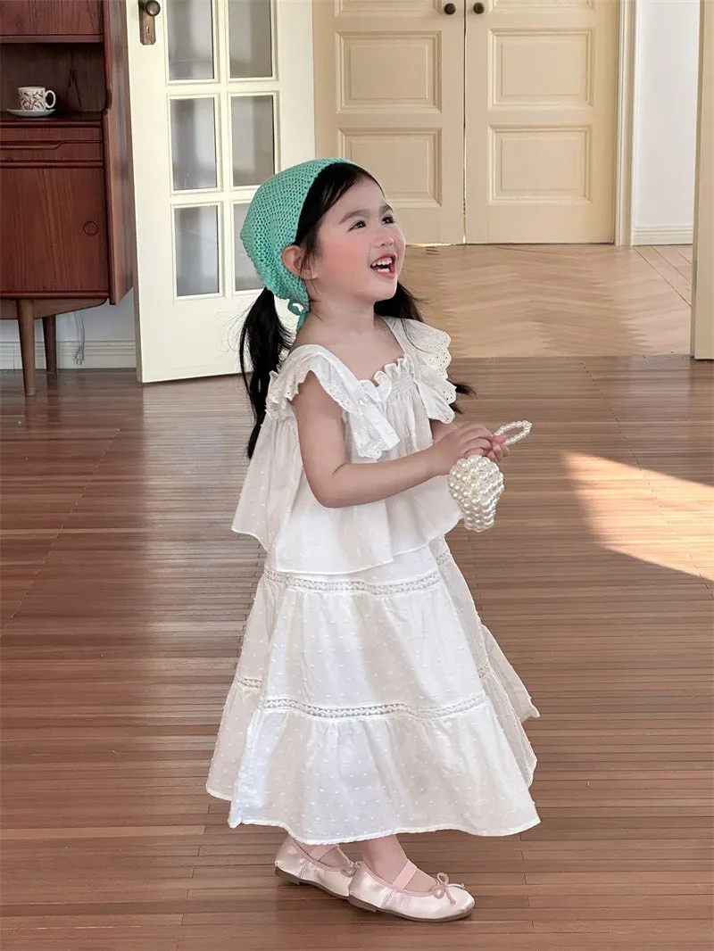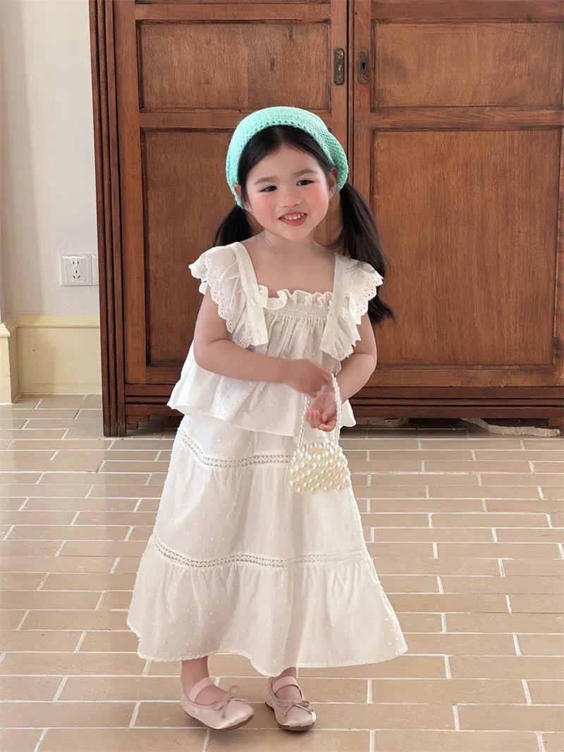 選用布料材質: 70%棉🌸 提花飛袖花邊娃娃衫吊帶+半身裙兩件套裝甜美中帶點精緻感的小公主套裝✨細節控一定會愛上的夢幻單品💕提花面料自帶高級質感,搭配飛袖設計與細緻花邊,層層堆疊出滿滿少女感🌷上衣娃娃版型+吊帶層次搭配,穿起來更加有造型感!下身半身裙輕盈飄逸,整套穿搭優雅又不失俏皮,每一步都像在發光✨