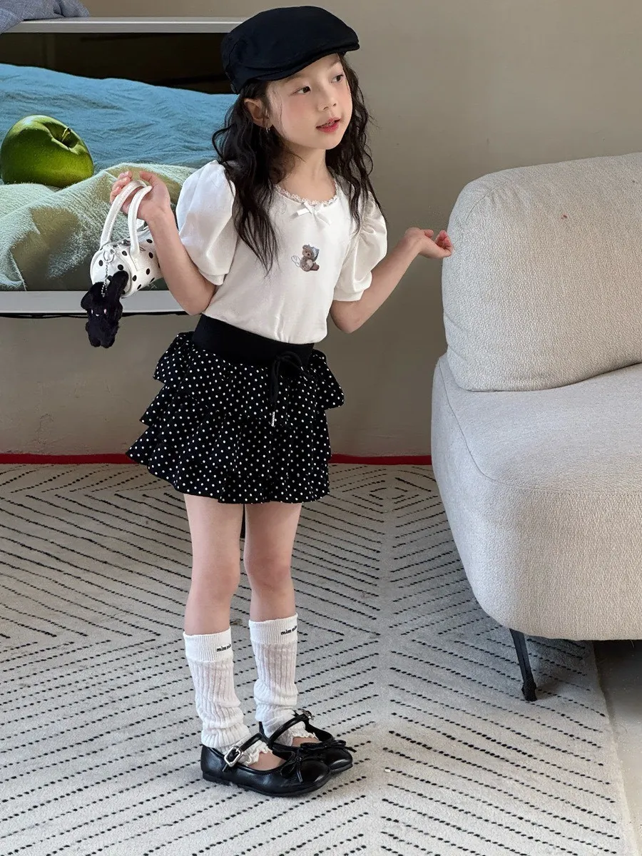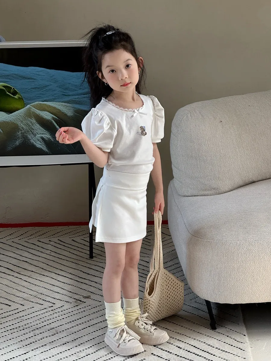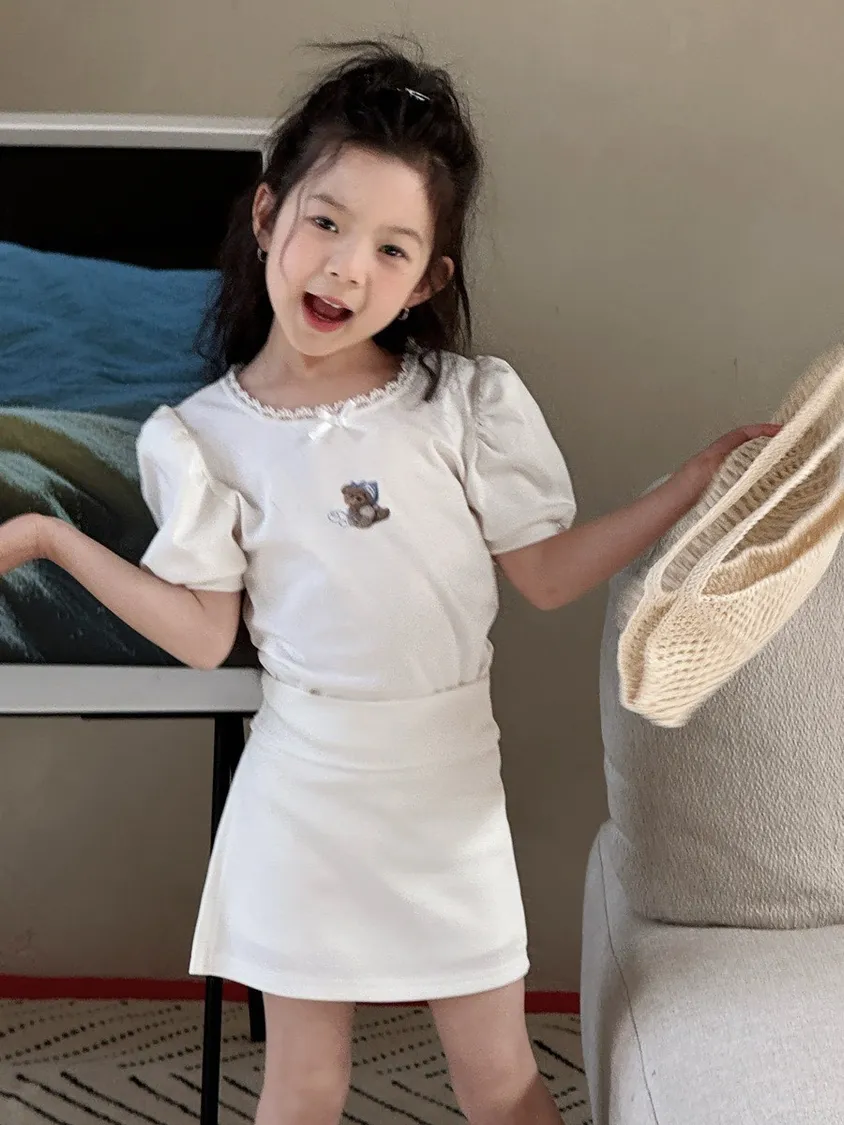 小熊印花蕾絲大圓領泡泡袖T恤 🧸