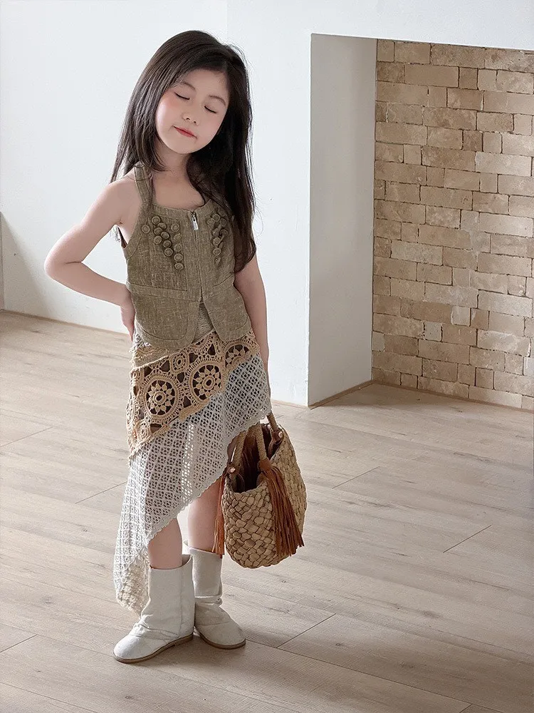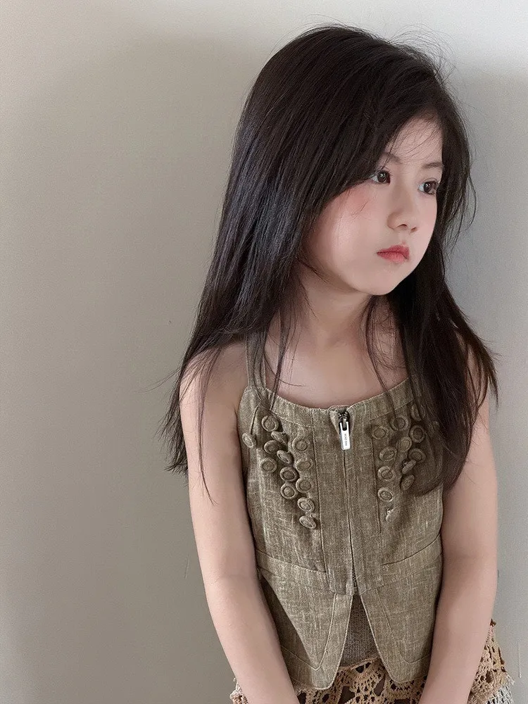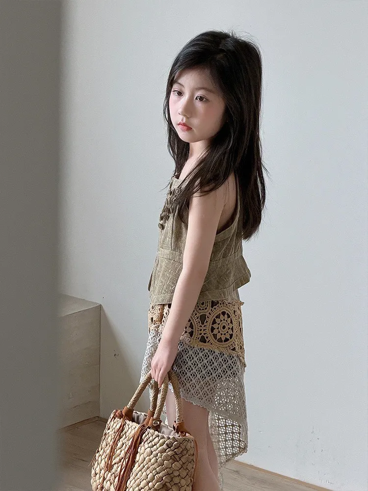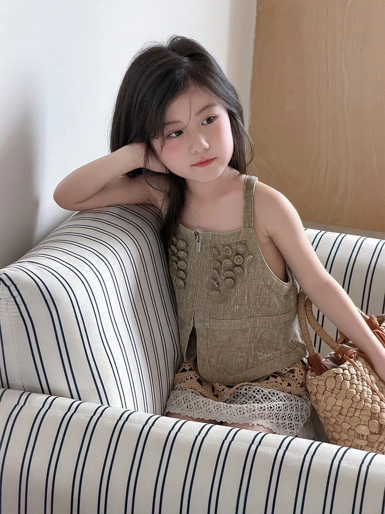 這套夏季女童套裝用吊帶背心與