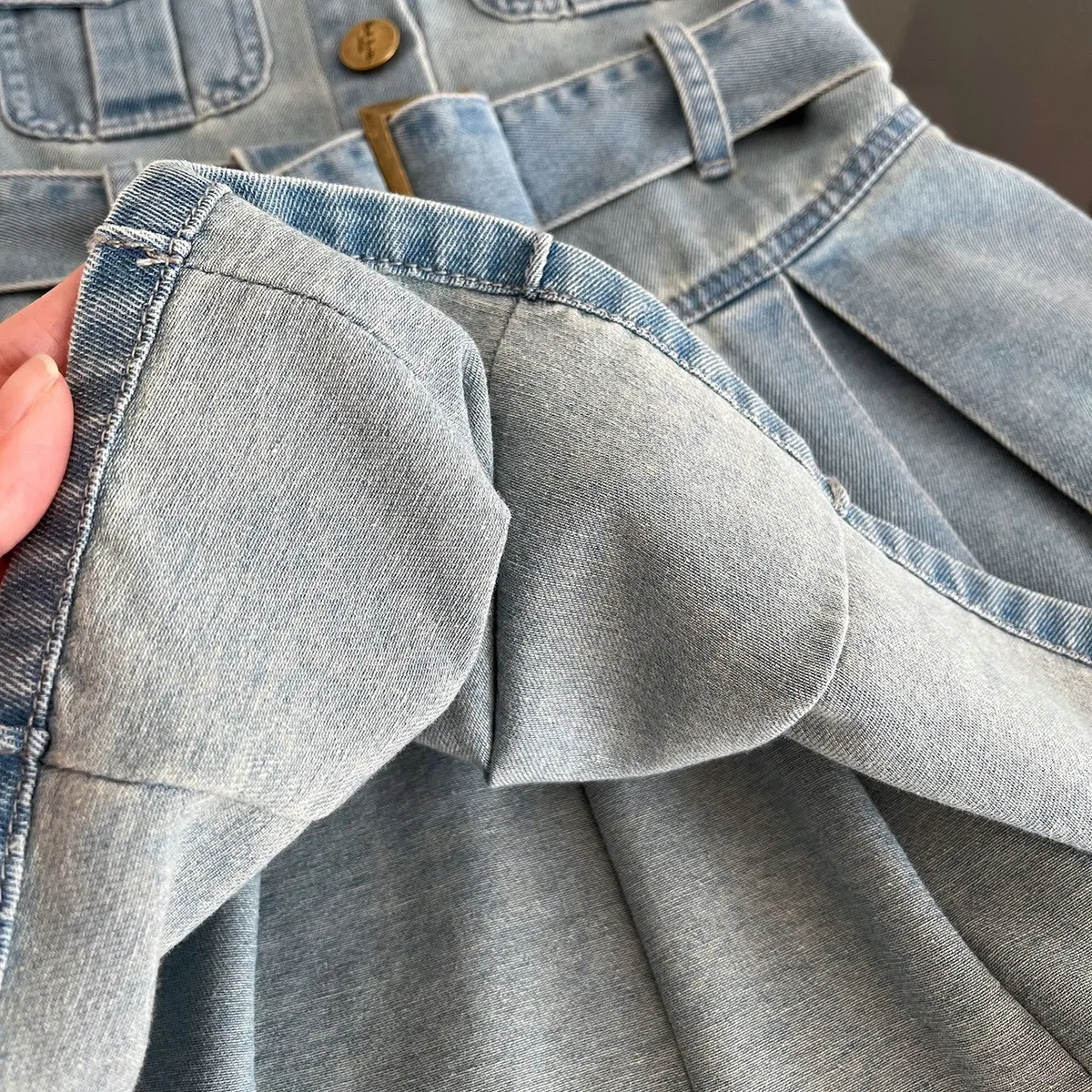 #百褶牛仔裙