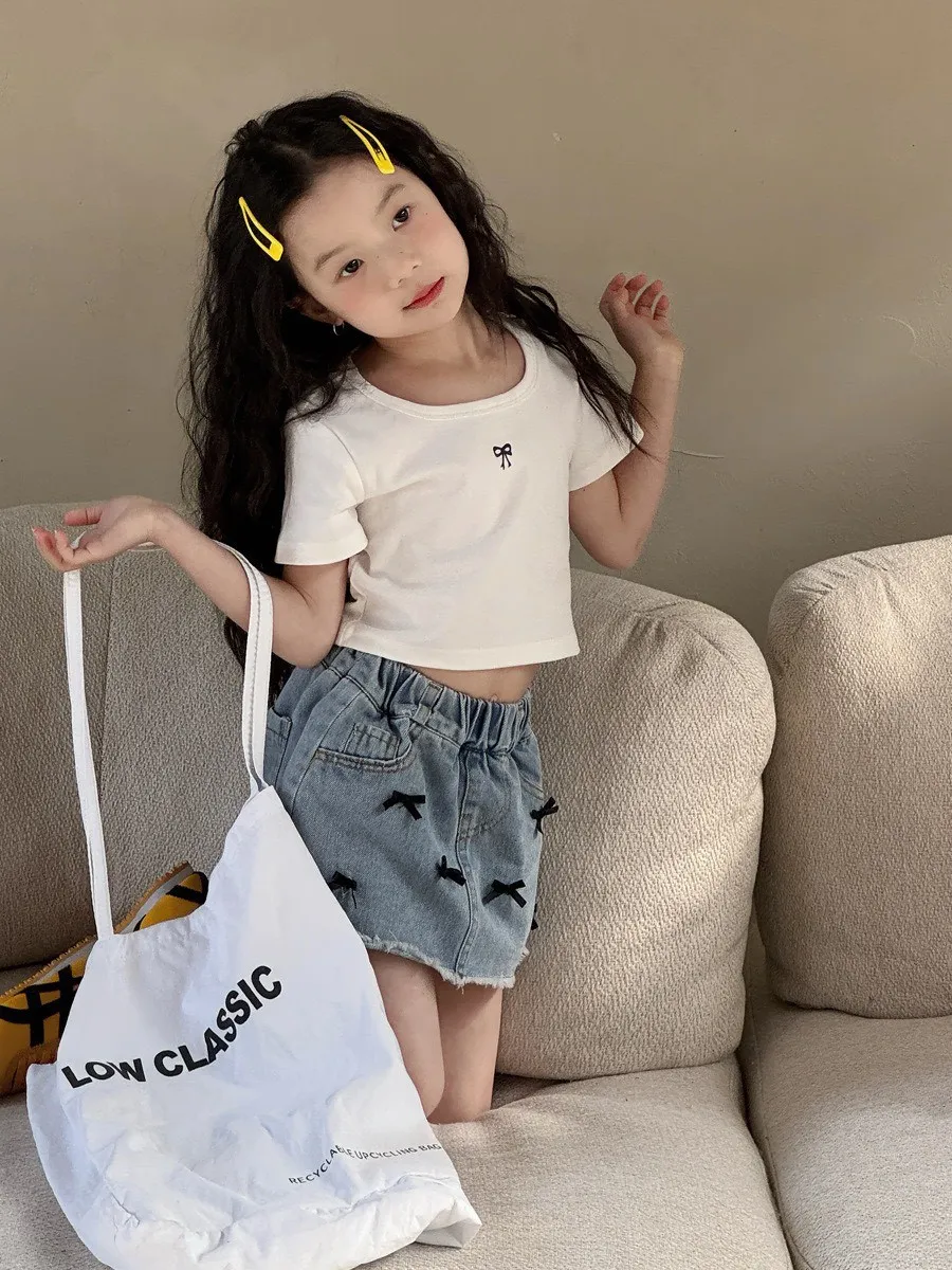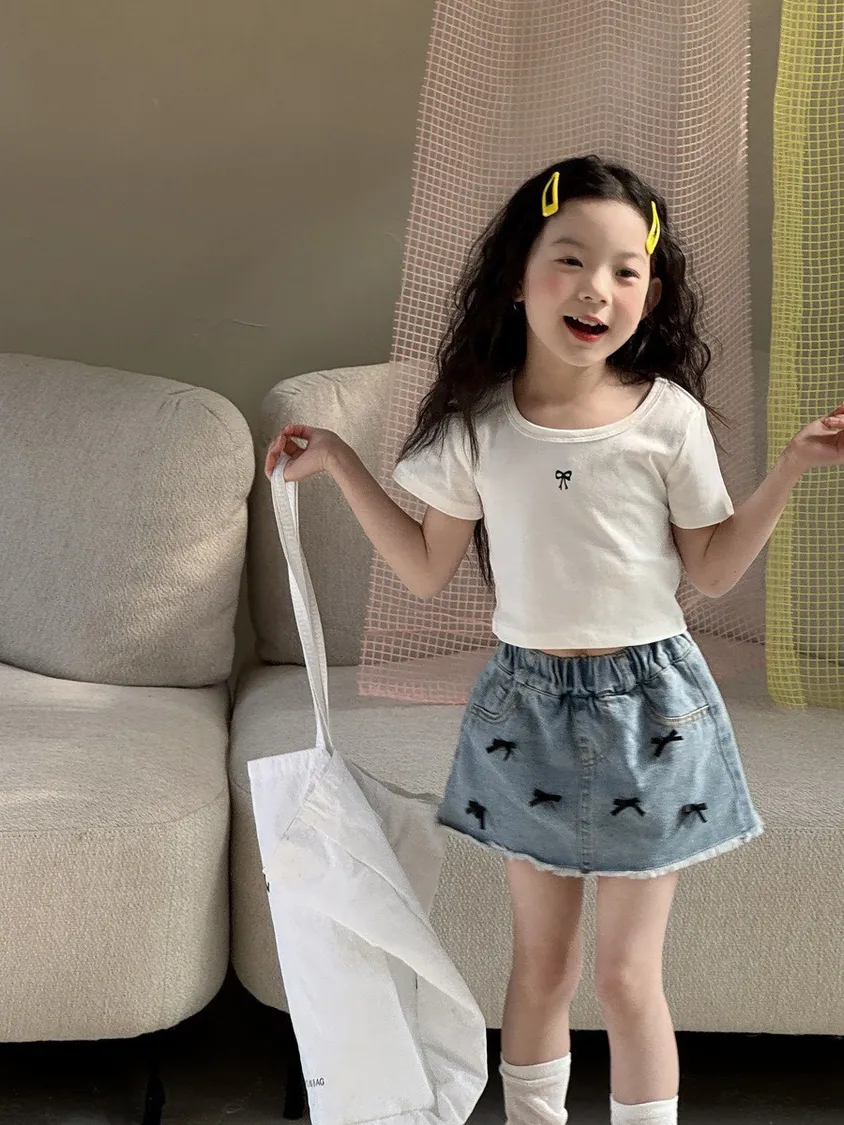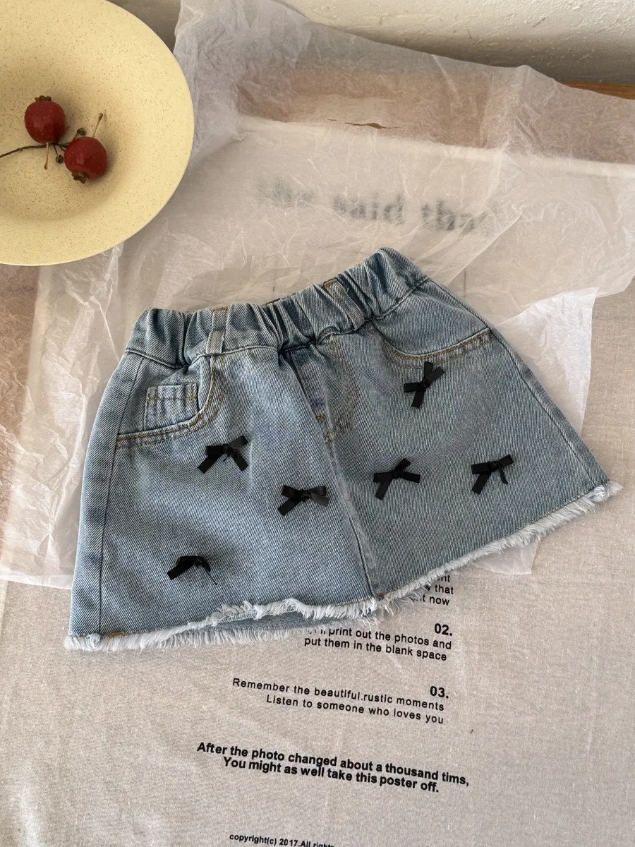 立體蝴蝶結毛邊牛仔A字短裙 🎀