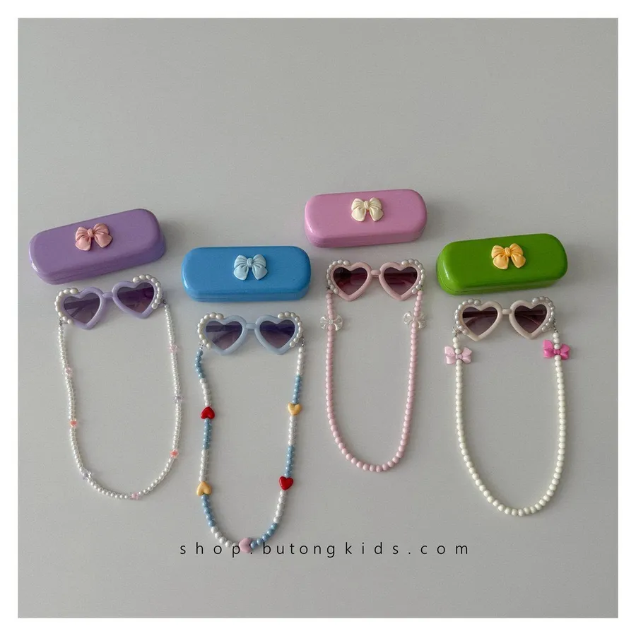 🕶️🍬 甜到犯規的夢幻系小配件 🍬🕶️這款【甜美蝴蝶結糖果色珍珠愛心太陽眼鏡(附盒子)】戴上瞬間變身甜系小公主,回頭率直接爆表💖可愛加倍的蝴蝶結點綴,甜而不膩,少女感滿滿多款粉嫩色調,像糖果一樣療癒,每一款都讓人想收藏精緻珍珠搭配愛心元素,閃耀又優雅,小細節超加分附贈收納盒,外出攜帶更方便,也超適合送禮!