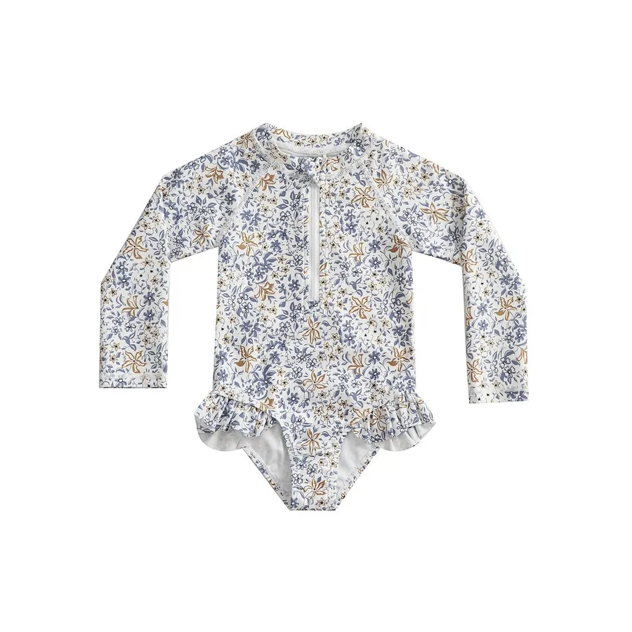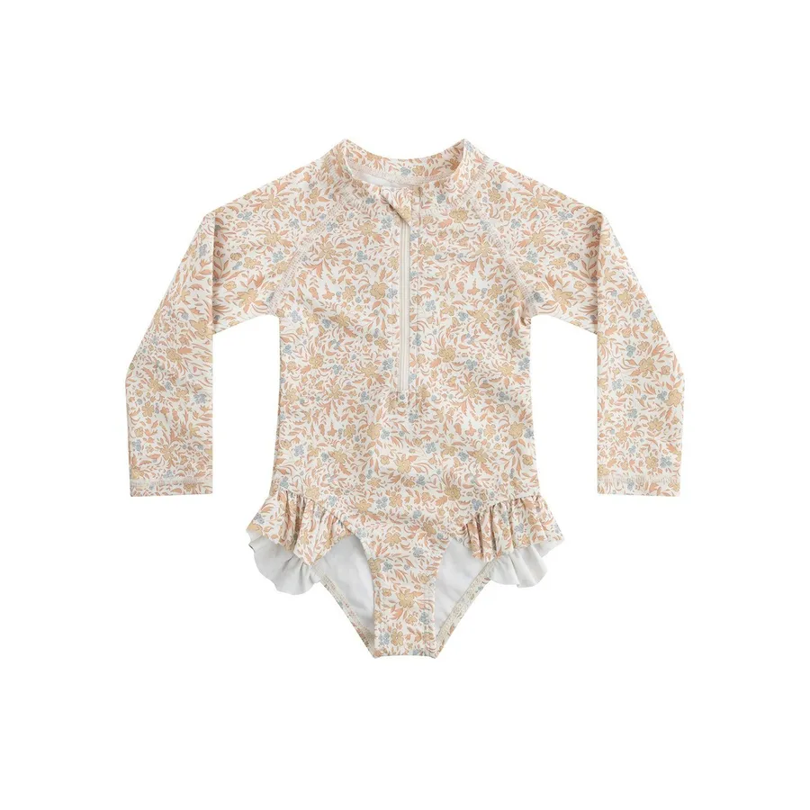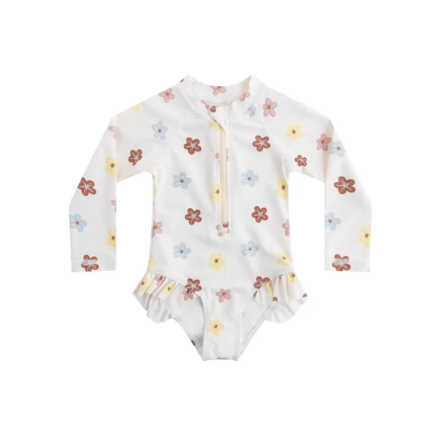 這款【ins風碎花長袖防曬連身泳衣(附泳帽)】