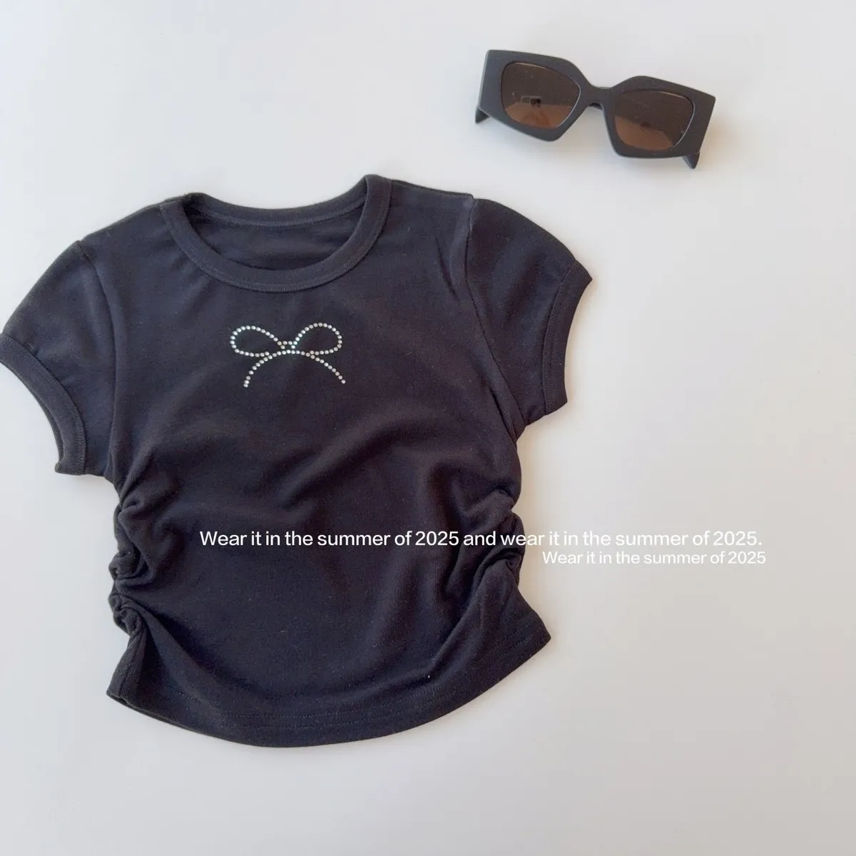 🎀✨美式短款蝴蝶結燙鑽T恤|甜酷女孩的閃耀日常✨🎀