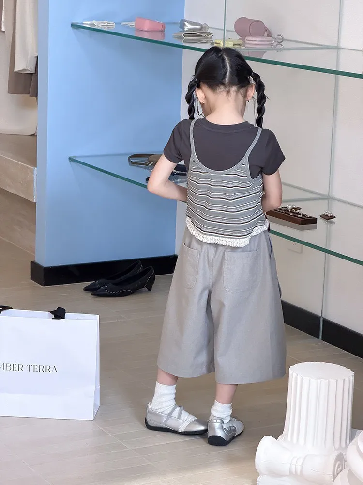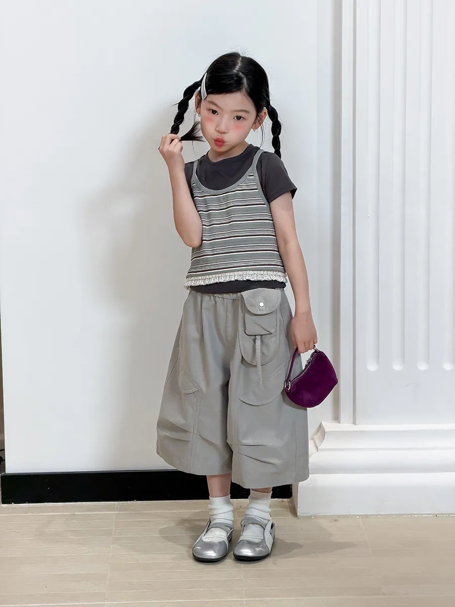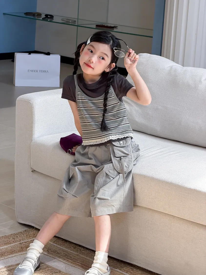 #條紋吊帶背心+內搭上衣