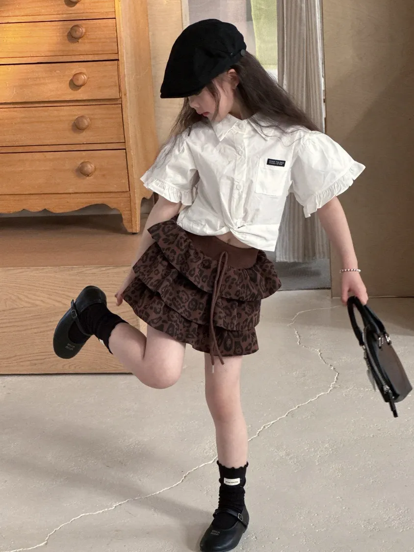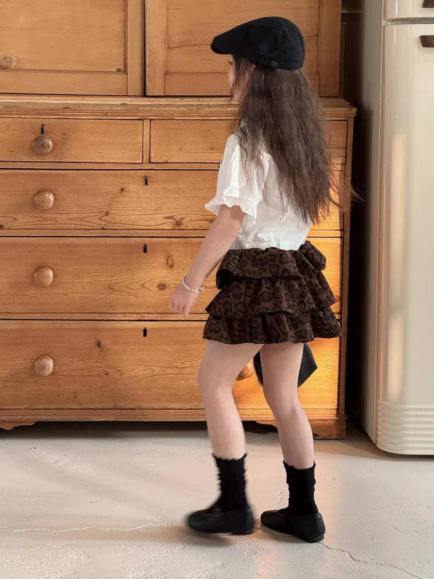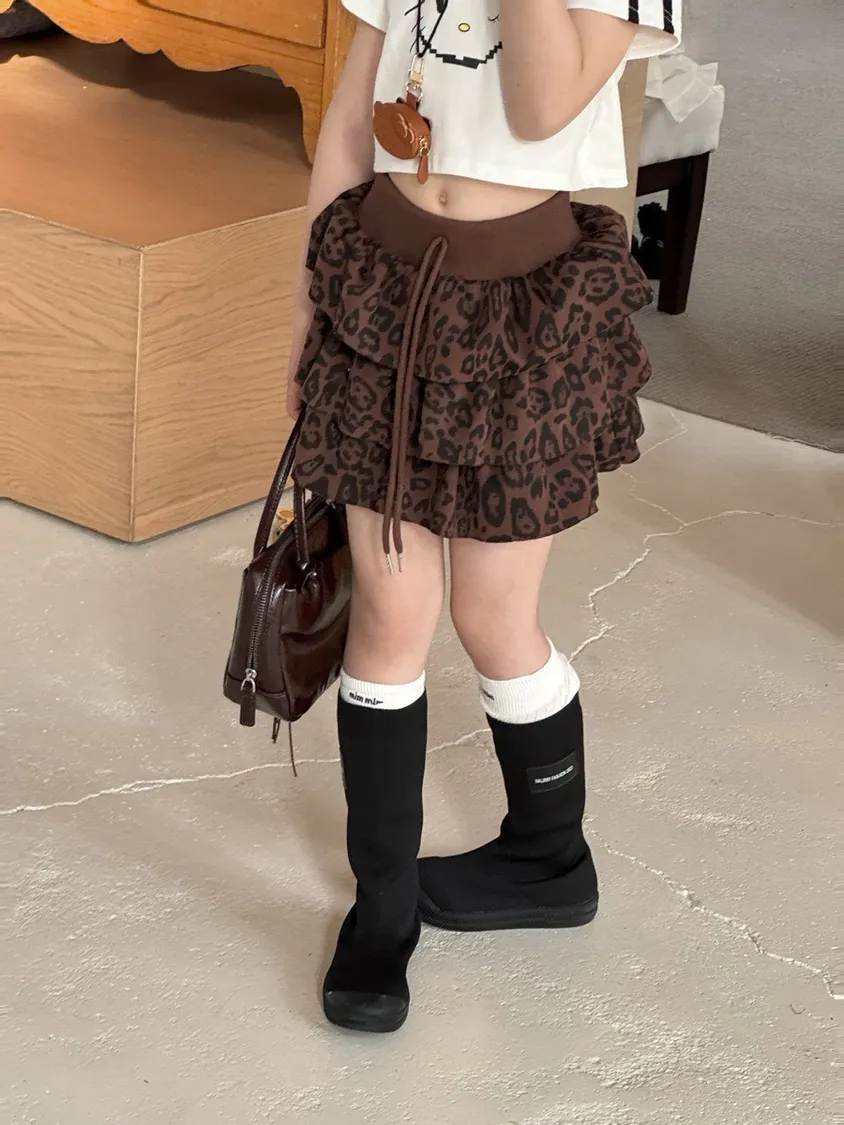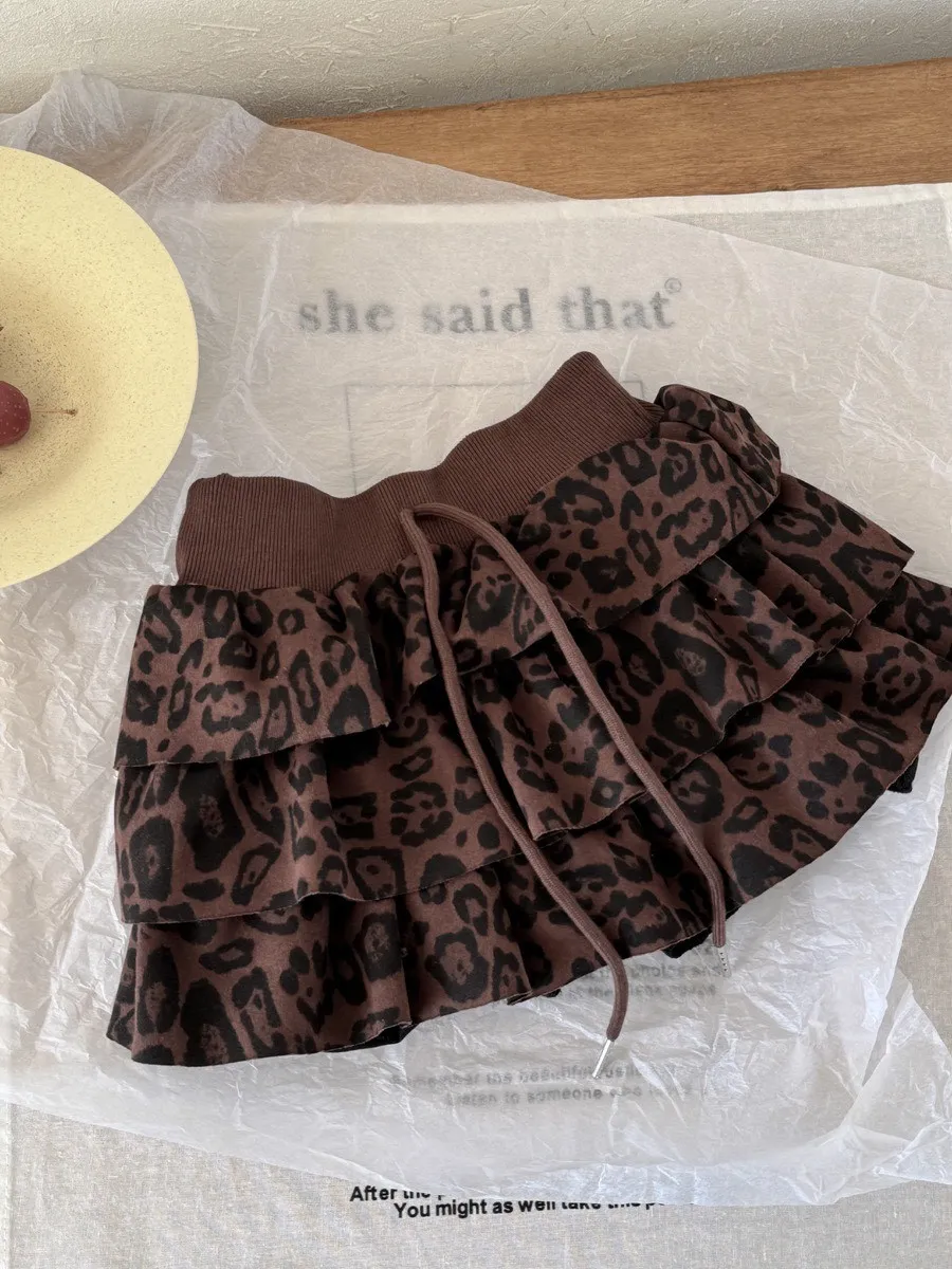 高腰豹紋蛋糕短裙