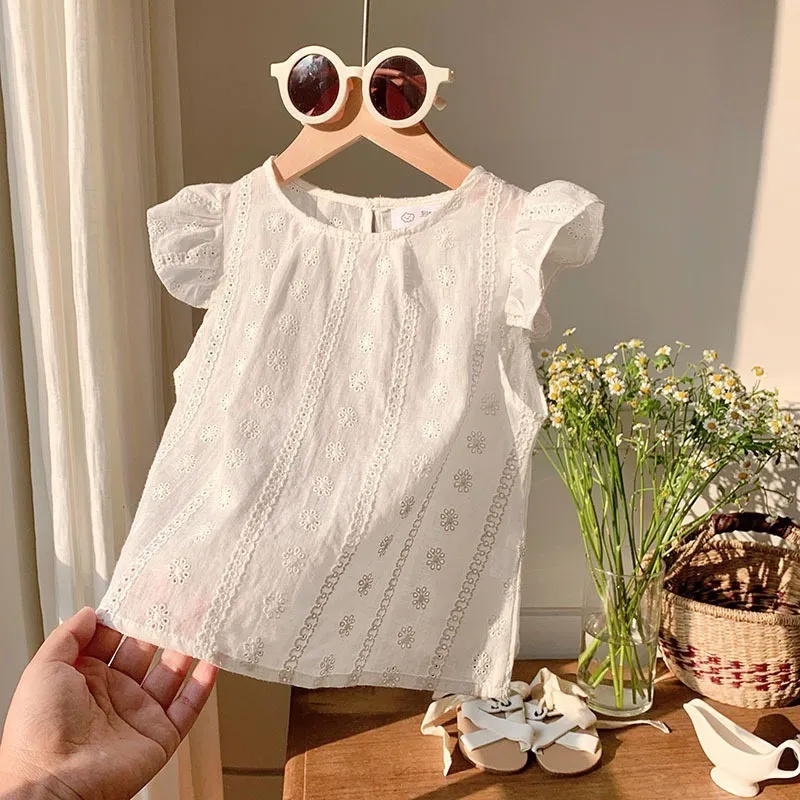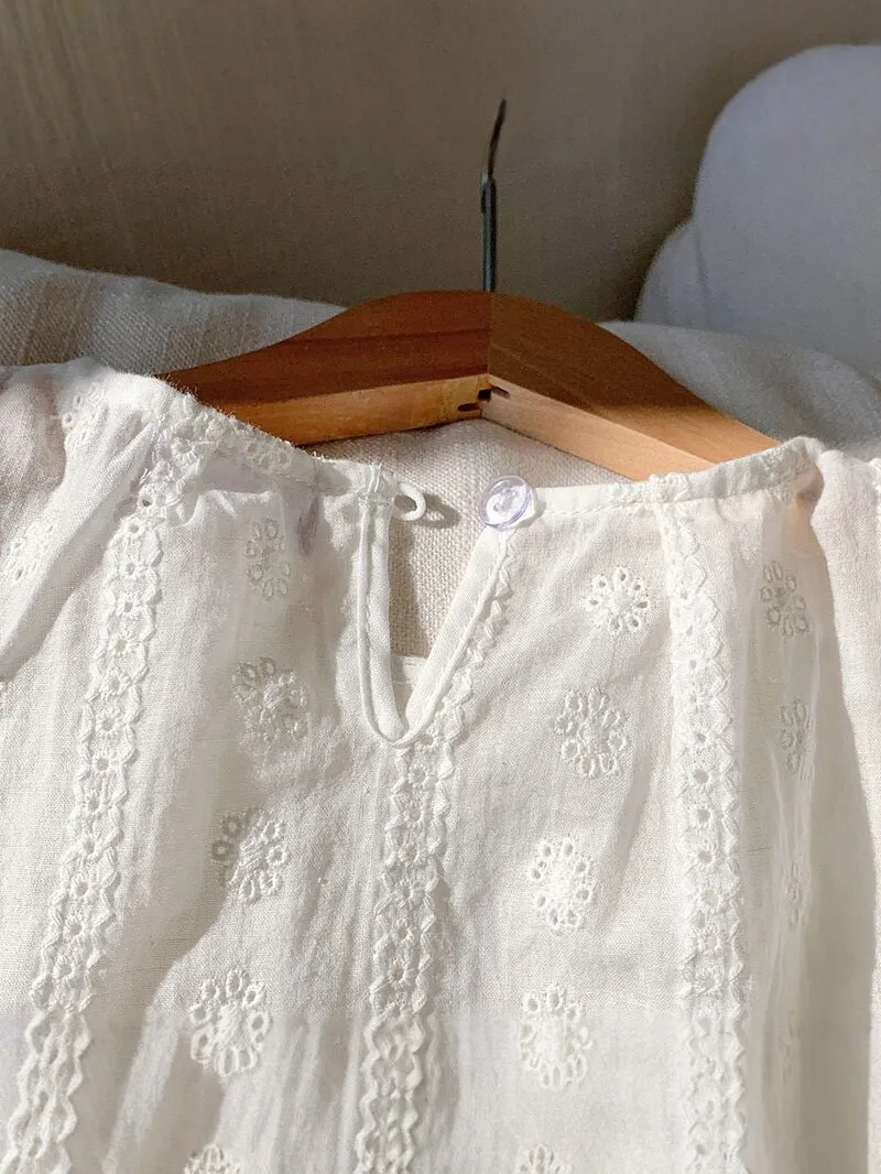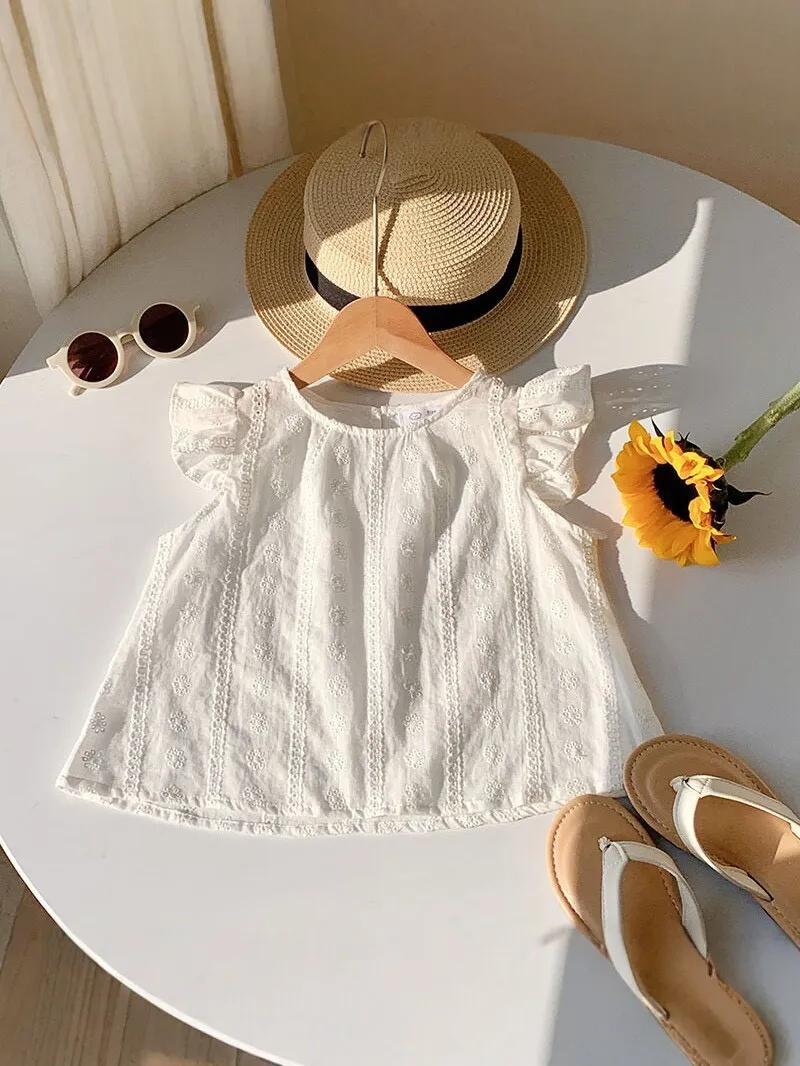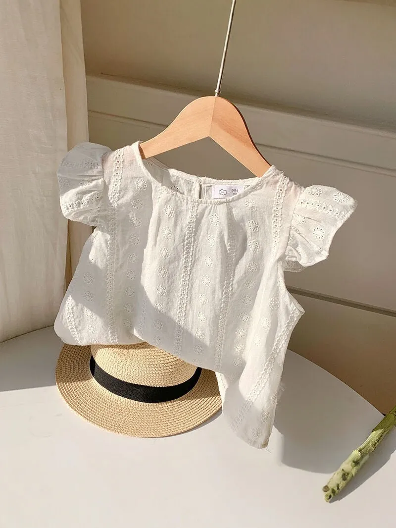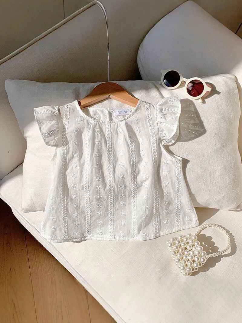 白色刺繡小飛袖娃娃衫