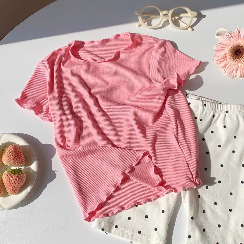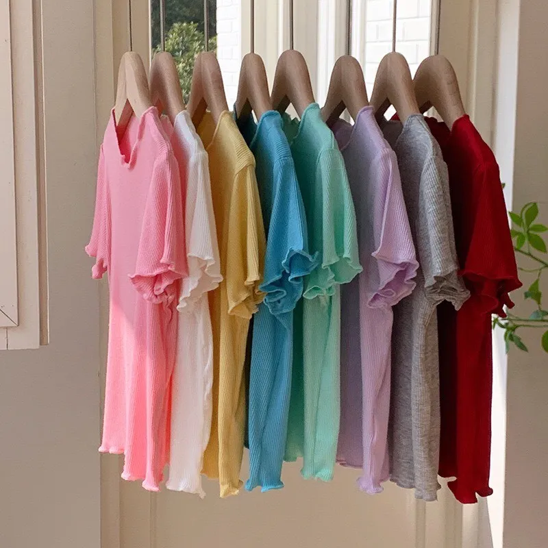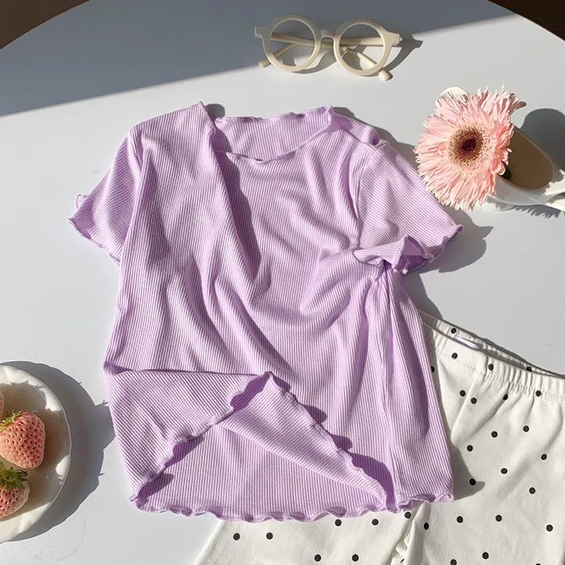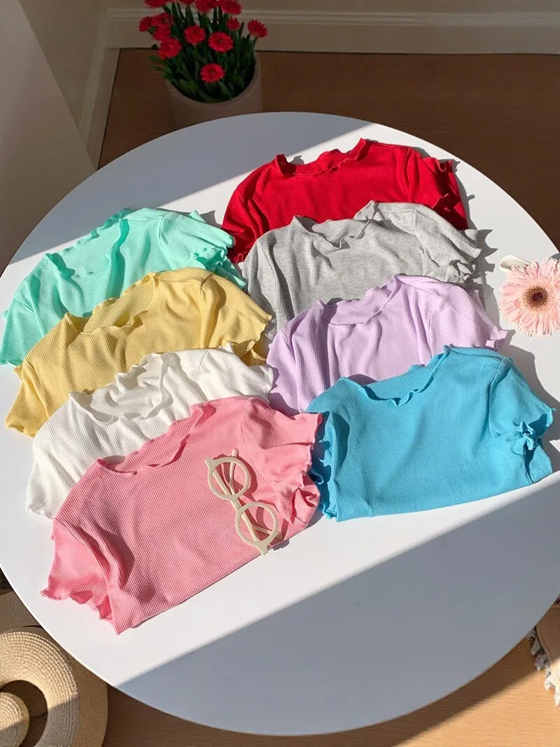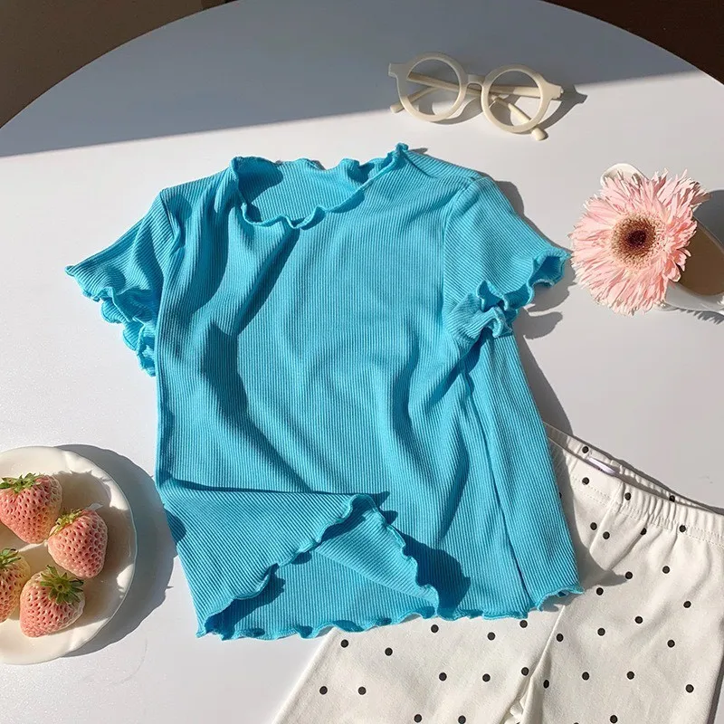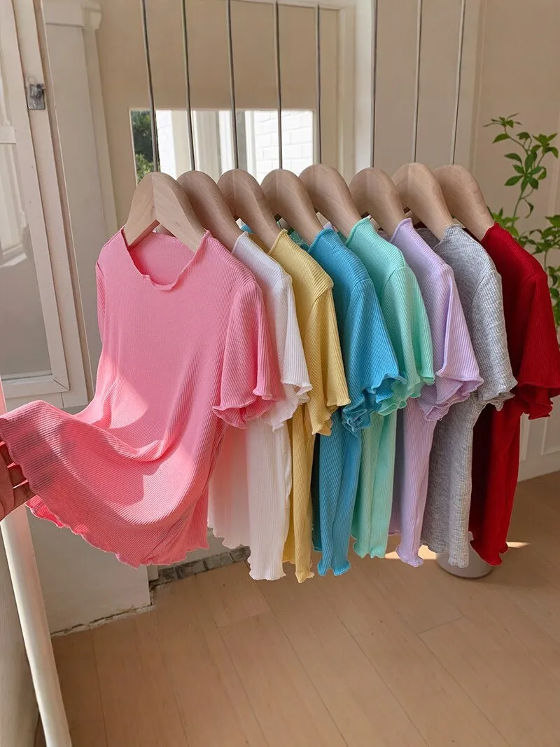 糖果色冰絲百搭木耳邊T恤
