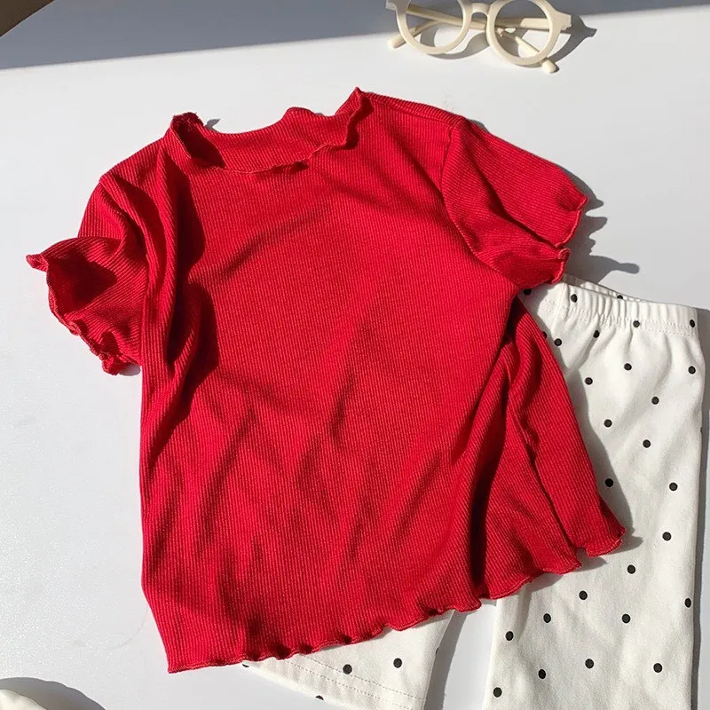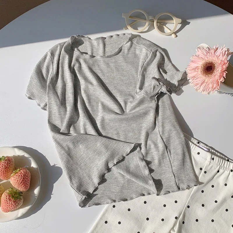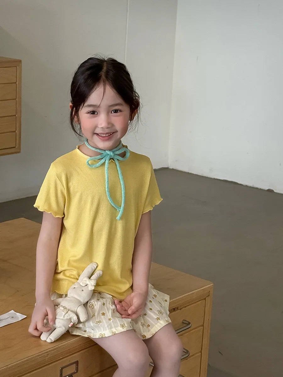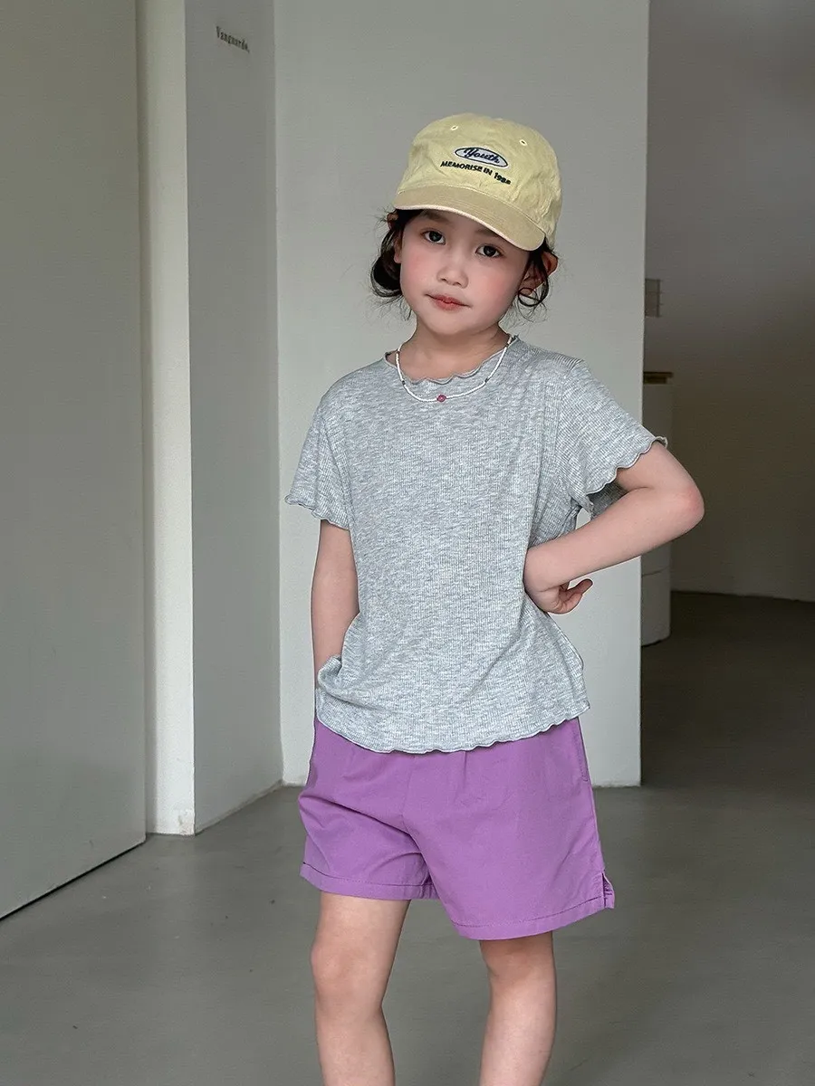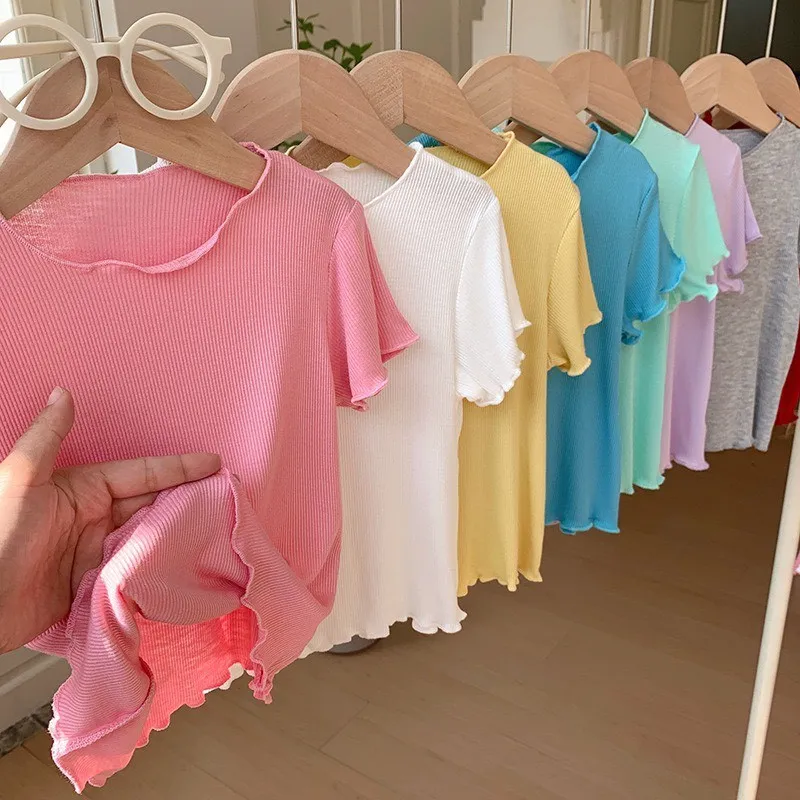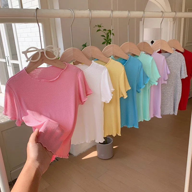 糖果色冰絲百搭木耳邊T恤