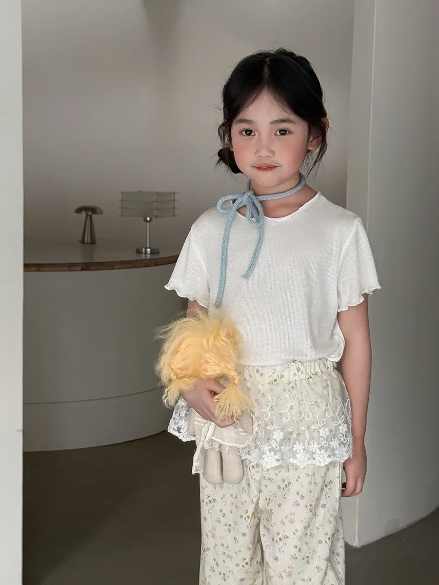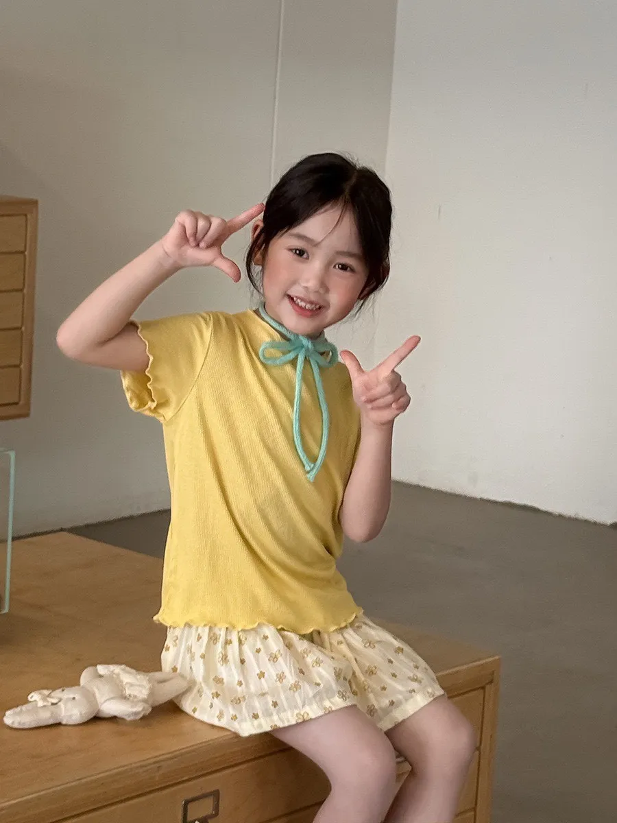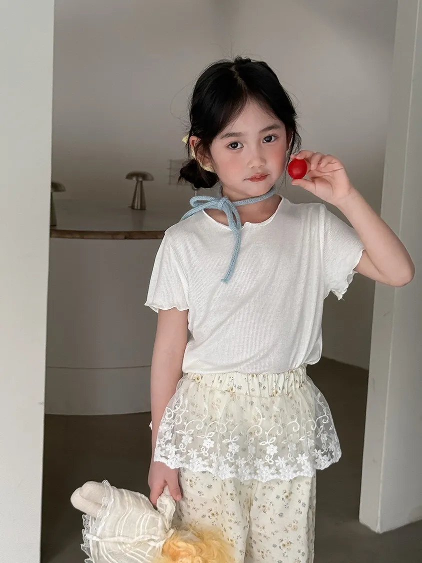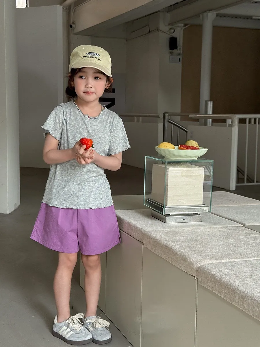 糖果色冰絲百搭木耳邊T恤