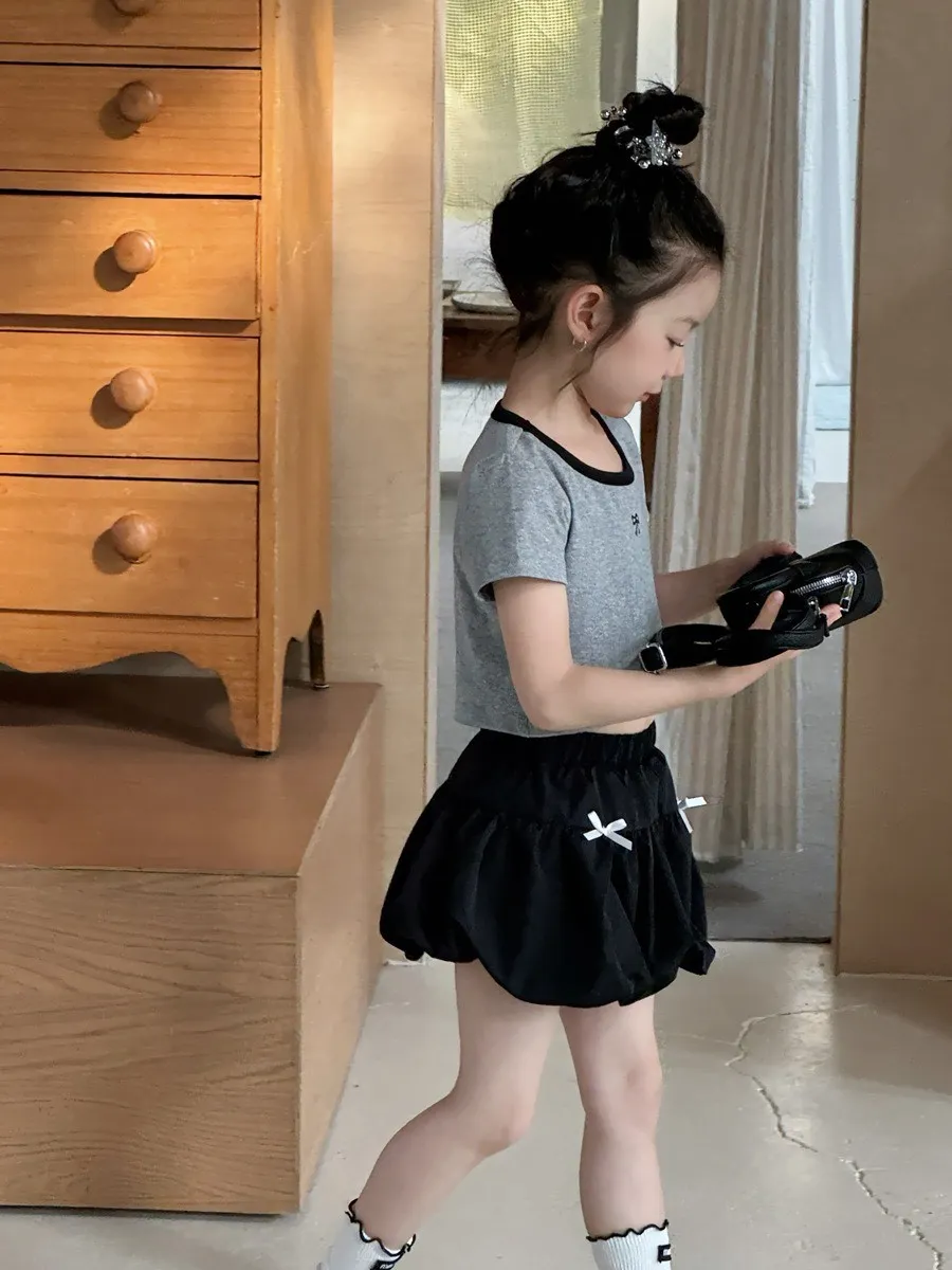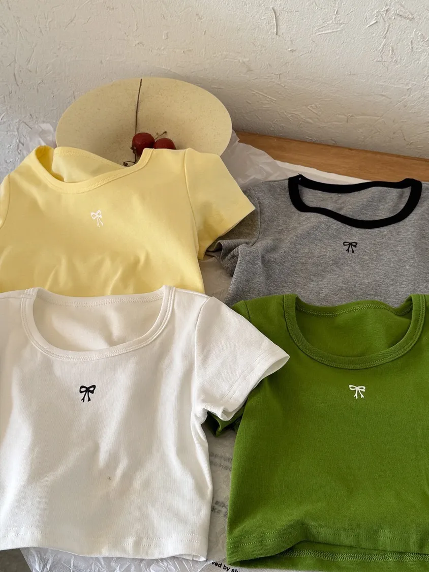 這款正肩設計的蝴蝶結短款上衣,以俐落版型搭配精緻蝴蝶結點綴,