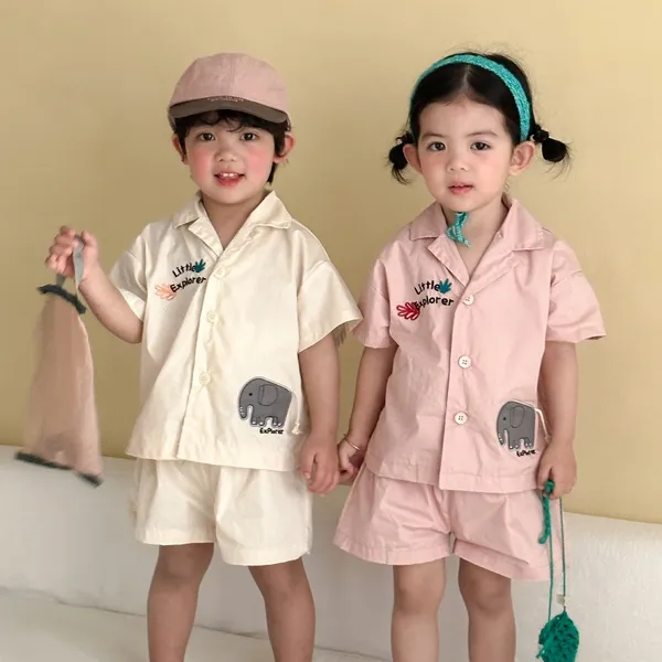 大象休閒襯衫上衣+短褲