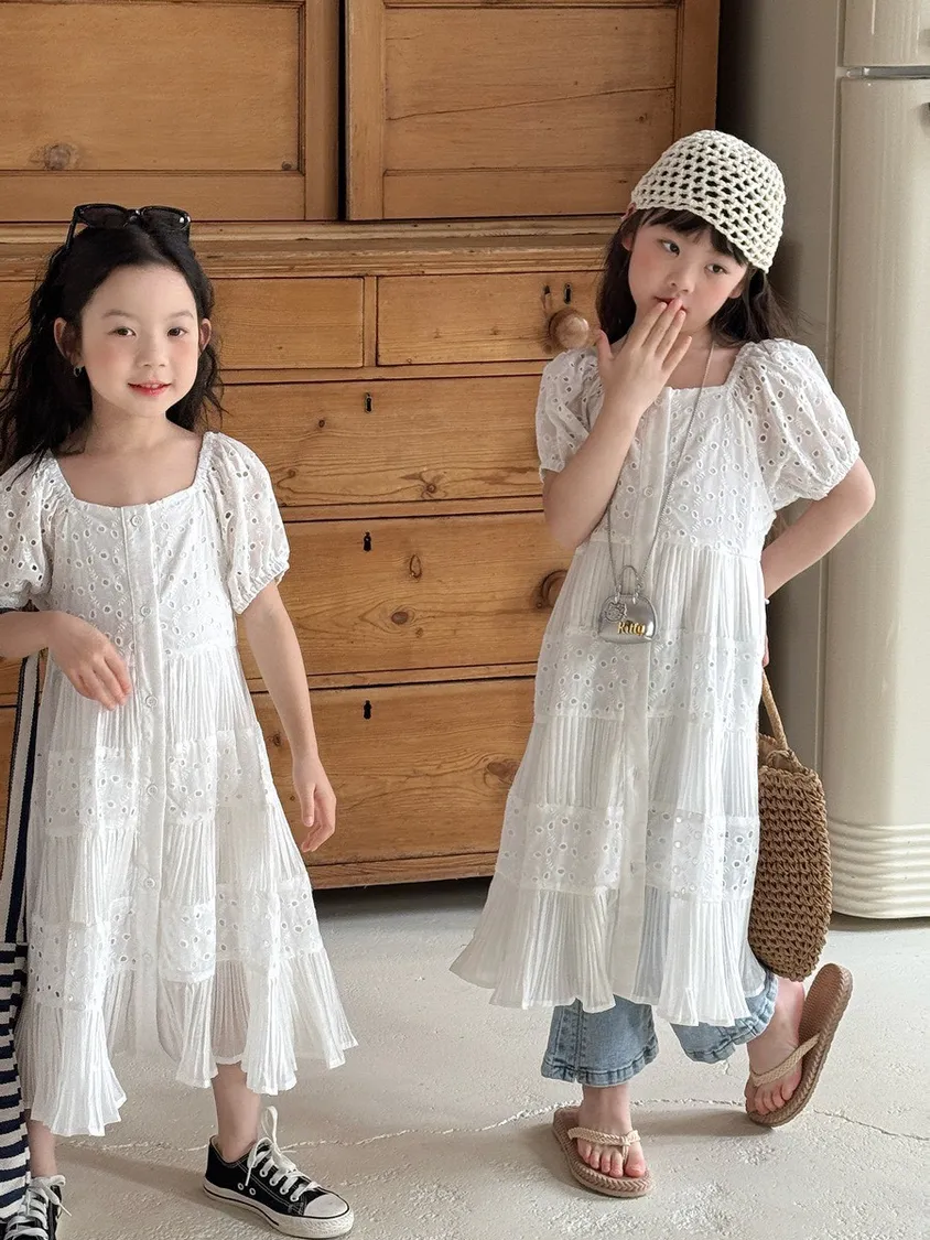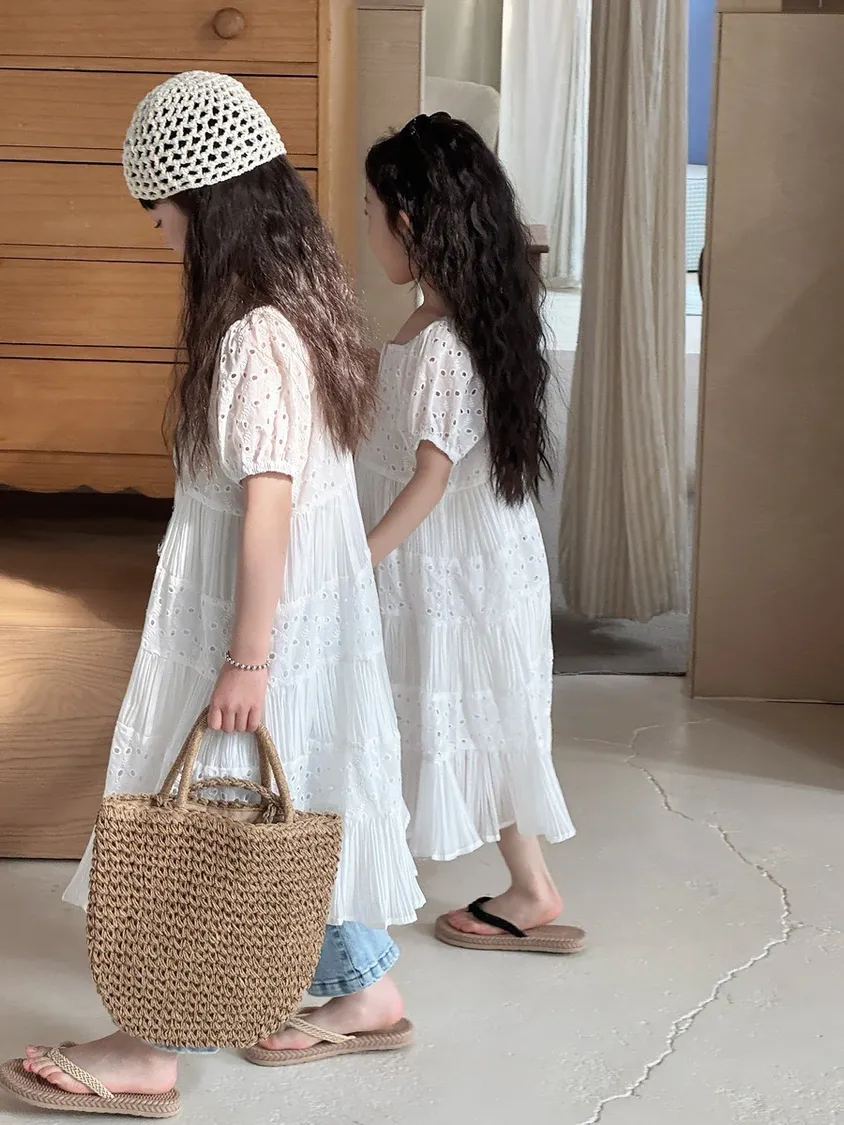 👗✨小小公主的優雅日常|法式拼接蕾絲長裙✨👗