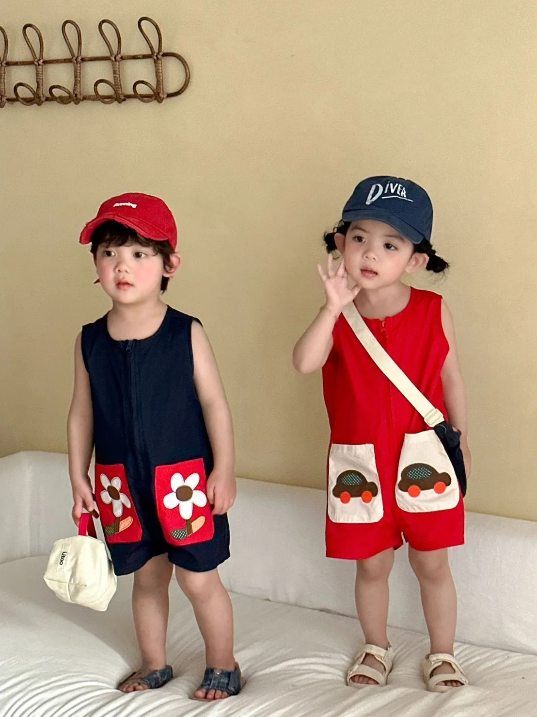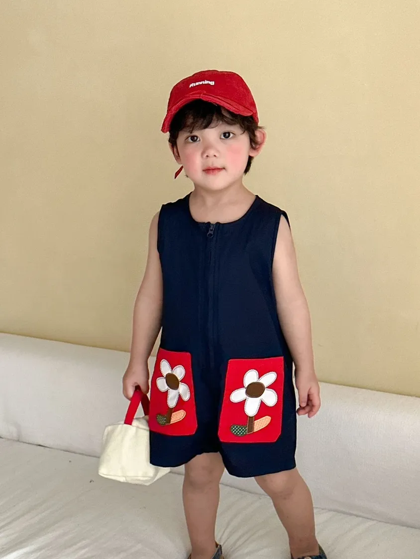 選用布料材質: 90%棉簡約、清新、又帶點可愛感的 韓系風無袖連體衣,讓寶貝在炎炎夏日也能穿得輕盈舒適,展現滿滿的萌感與時尚感。貼心無袖剪裁,活動更靈活自在。讓寶寶在夏天爬行、學走路、玩耍時都能保持涼爽舒適。