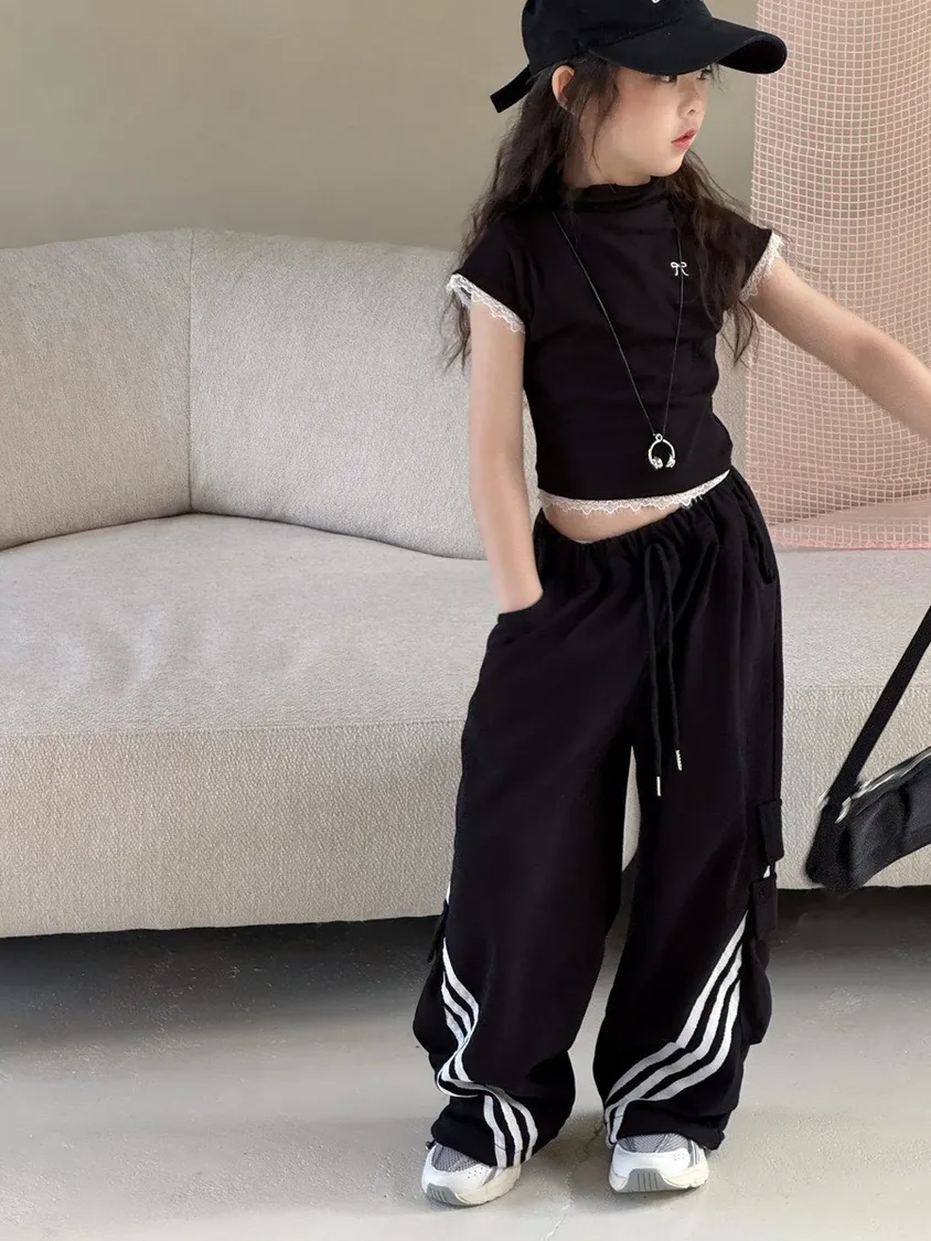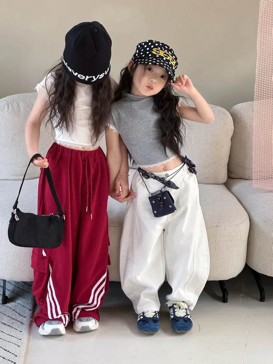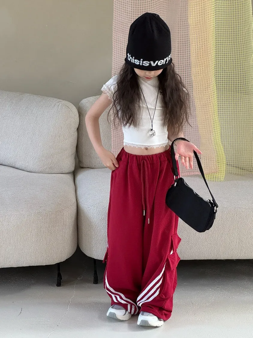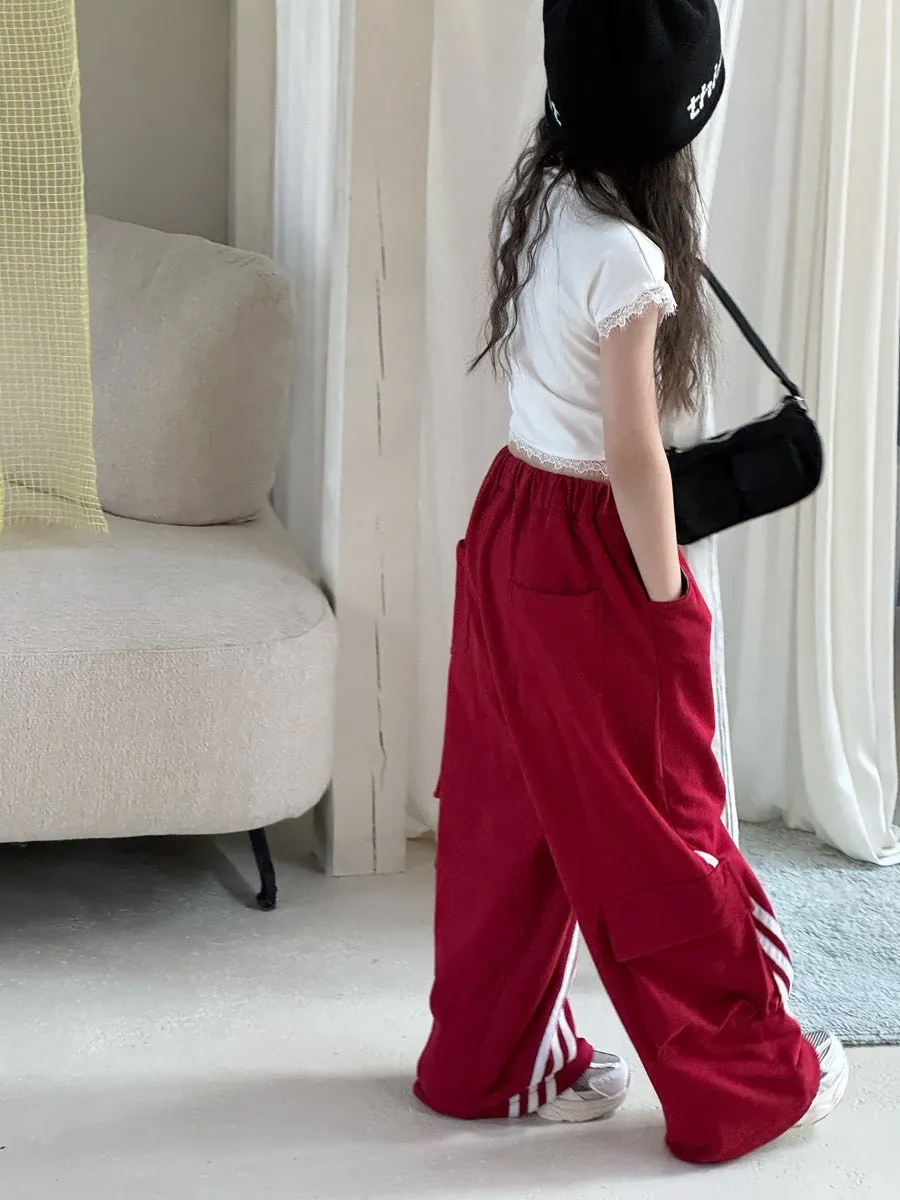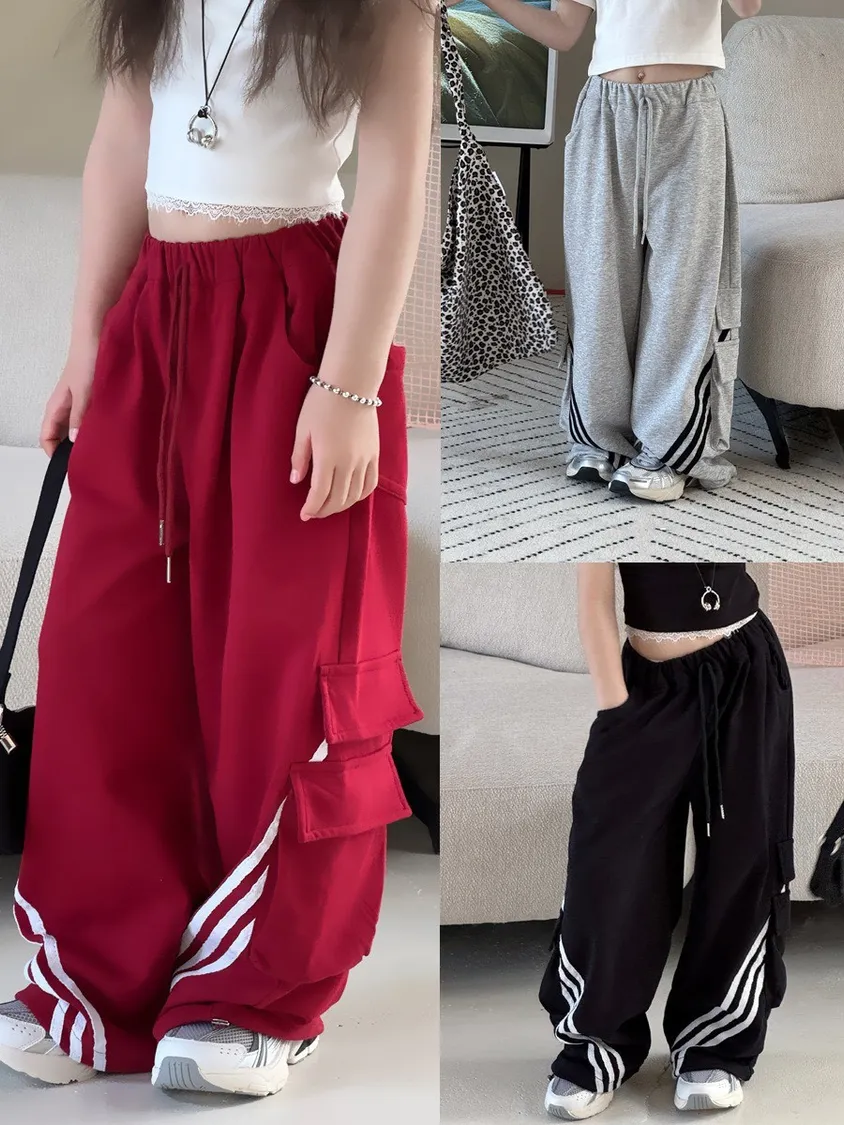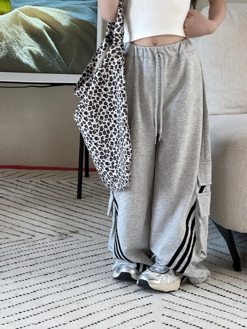 🌟舒適又時尚|美式織帶拼接設計寬褲🌟