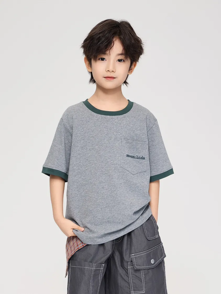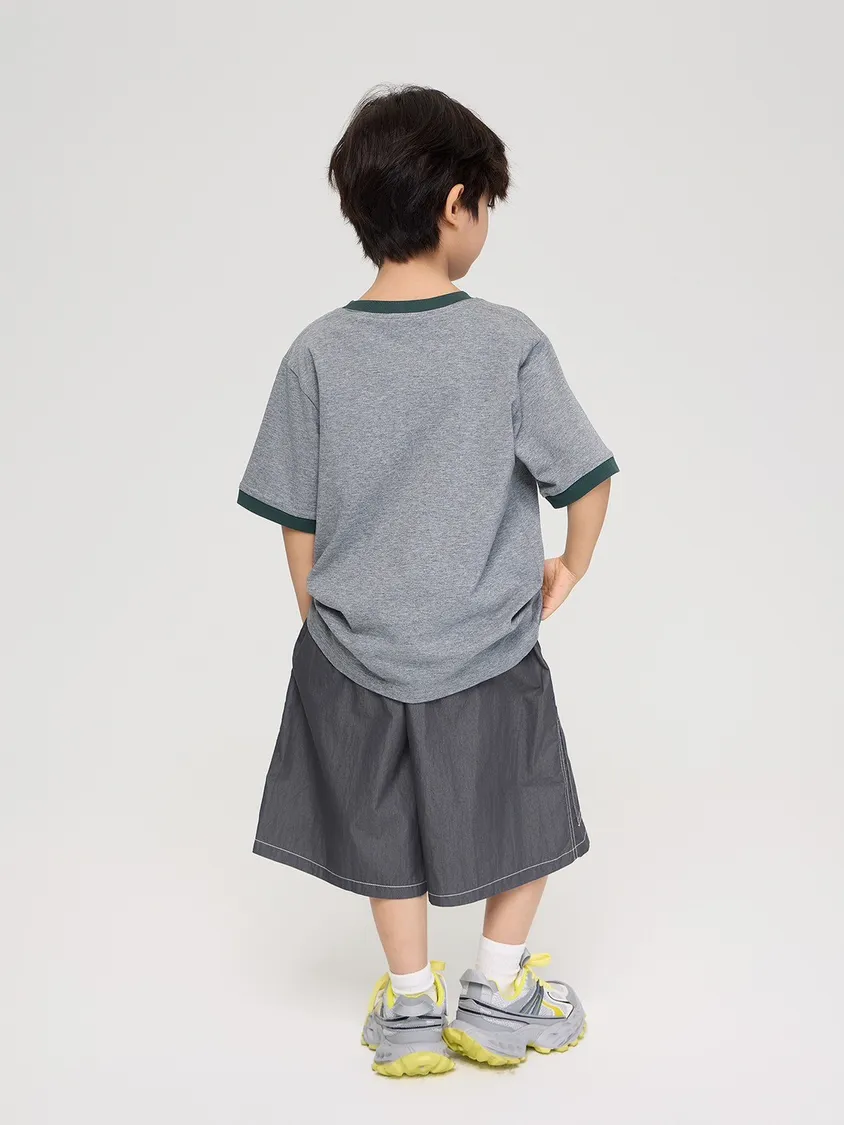 山系字母刺繡撞色圓領T恤,