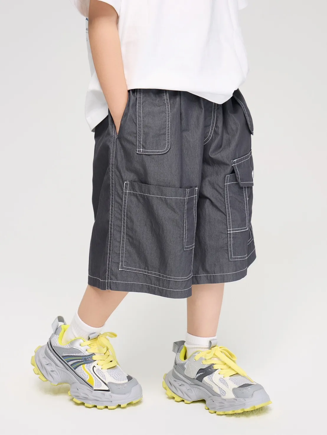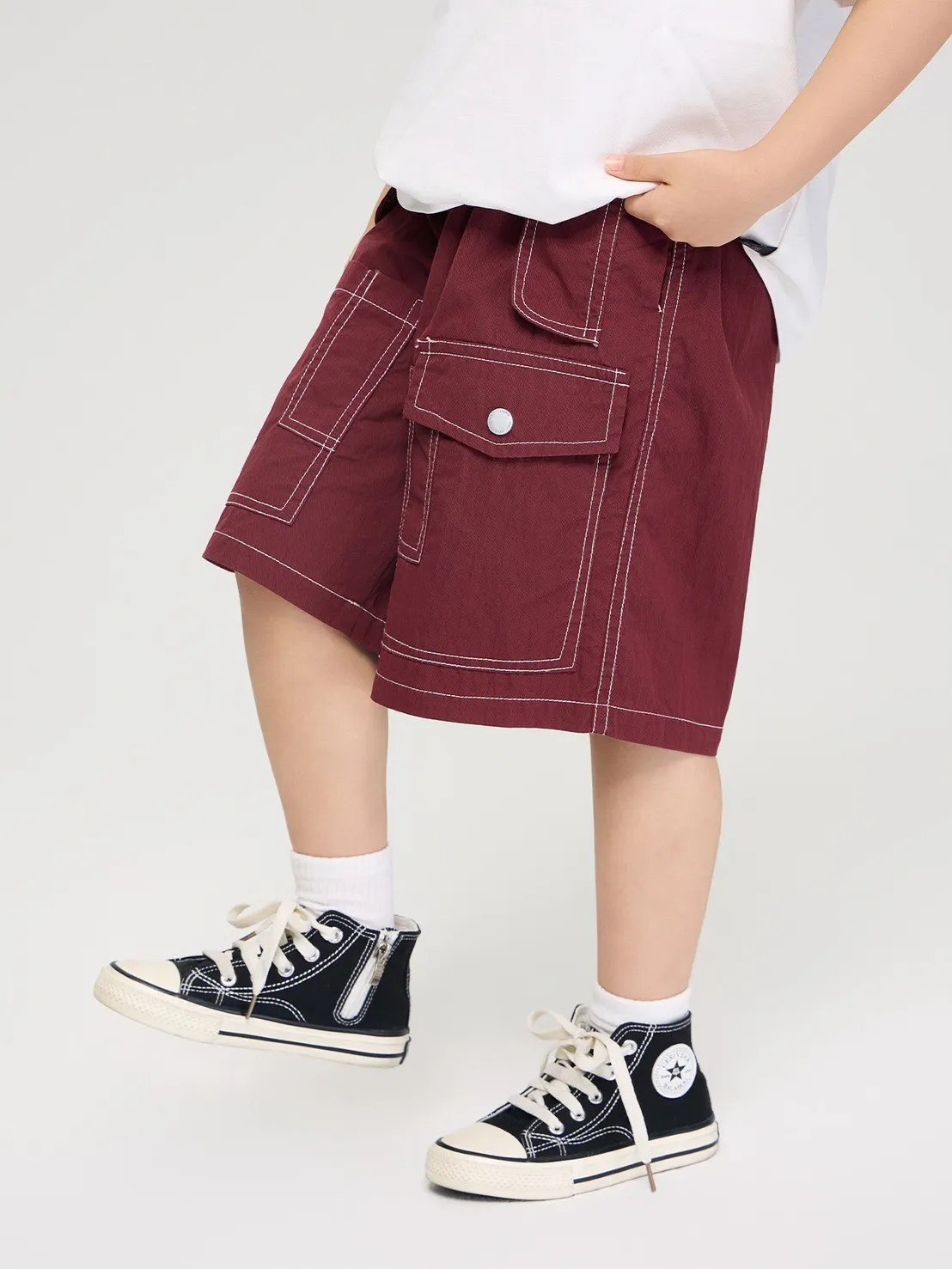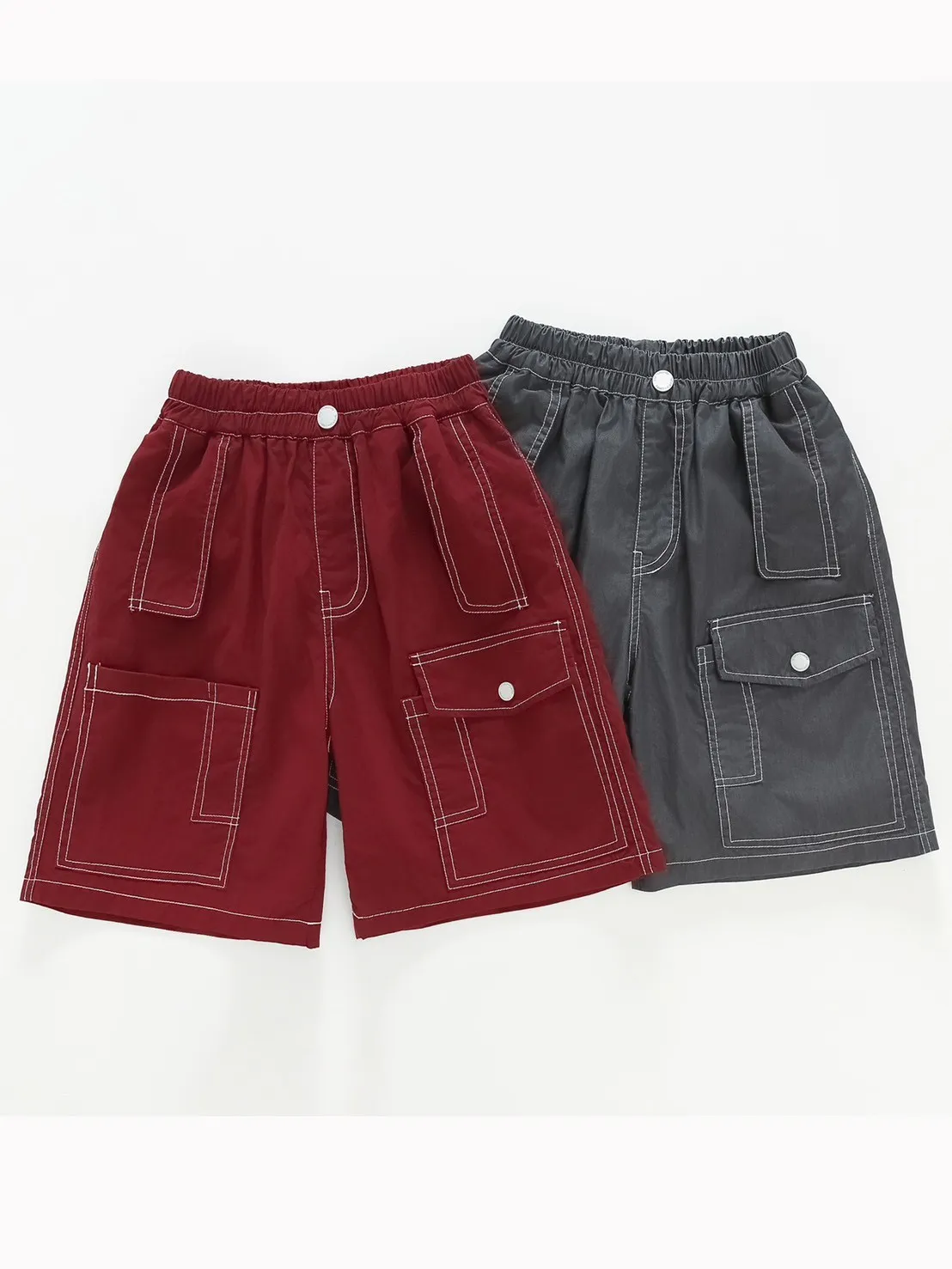 百搭明線工裝寬鬆五分褲,