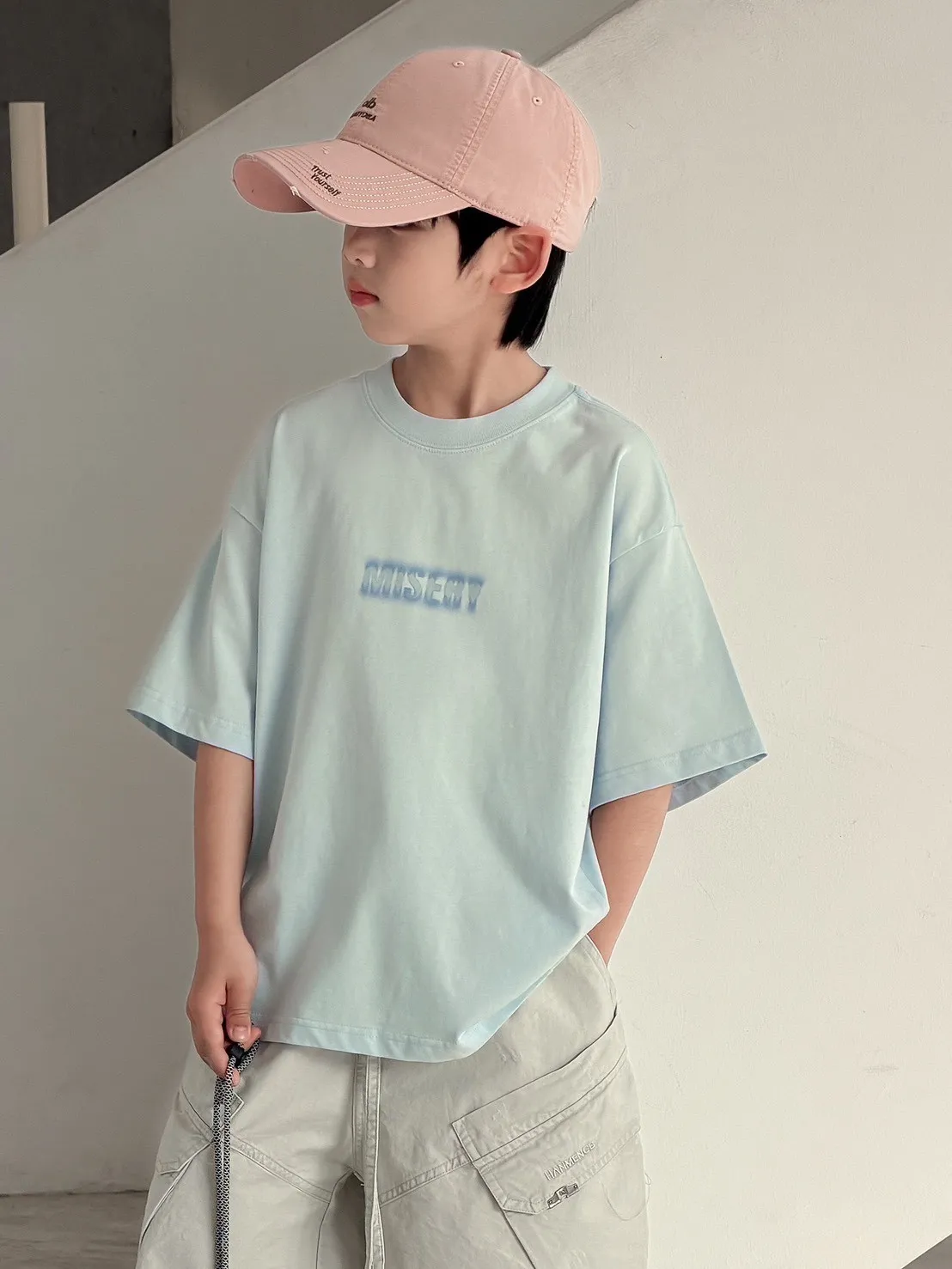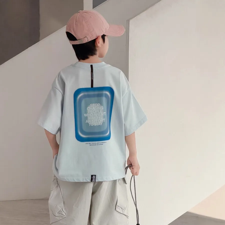 潮流帥氣淺藍色短袖T恤