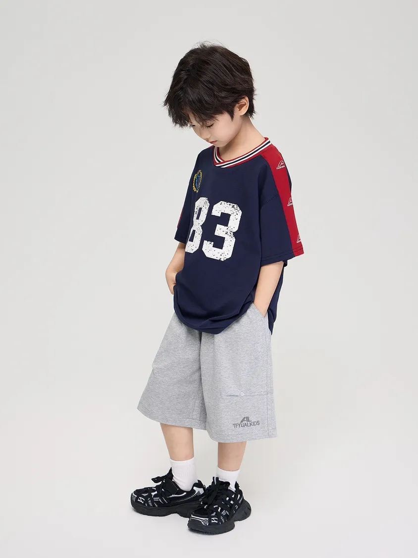 拼色運動風寬鬆字母印花T恤